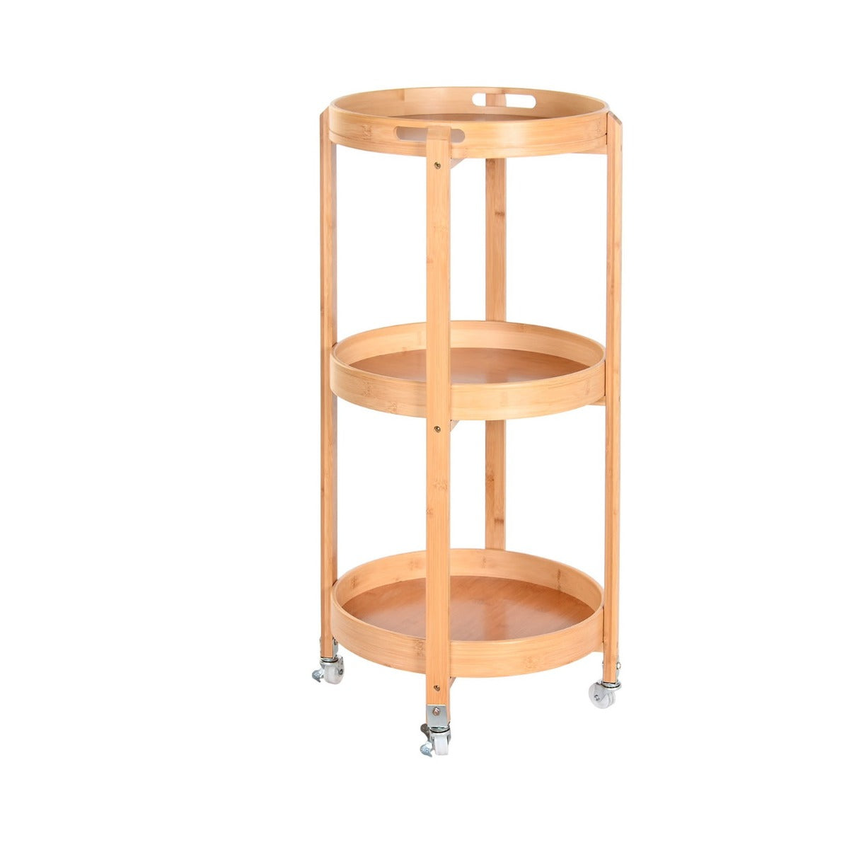 Masuta de bucatarie cu roti, din inox si bambus, in culoare naturala.