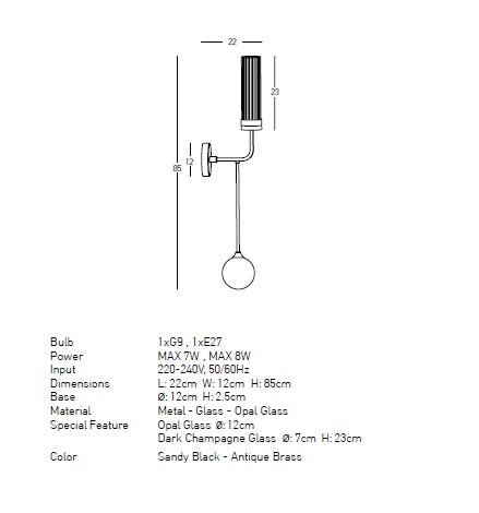 Tip bec: 1 x G9 MAX 7W/ 1 x E27 MAX 8W.
