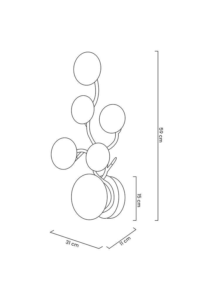 Aplica de perete moderna cu 6 cercuri din otel de dimensiuni diferite finisate in auriu.