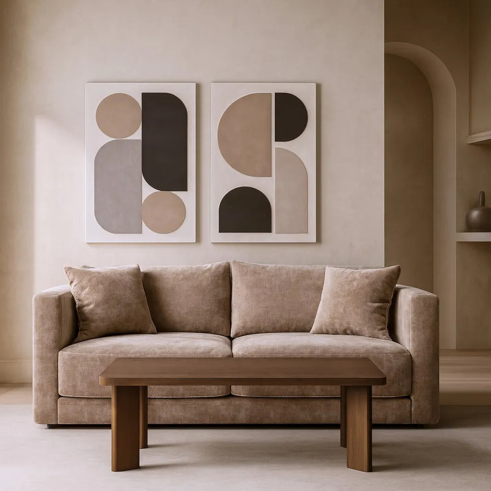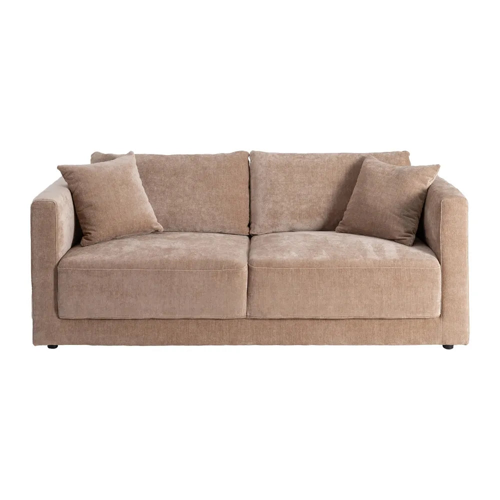 Canapea cu tesatura din 100% poliester, cadru din PAL, picioare din lemn de hevea.
