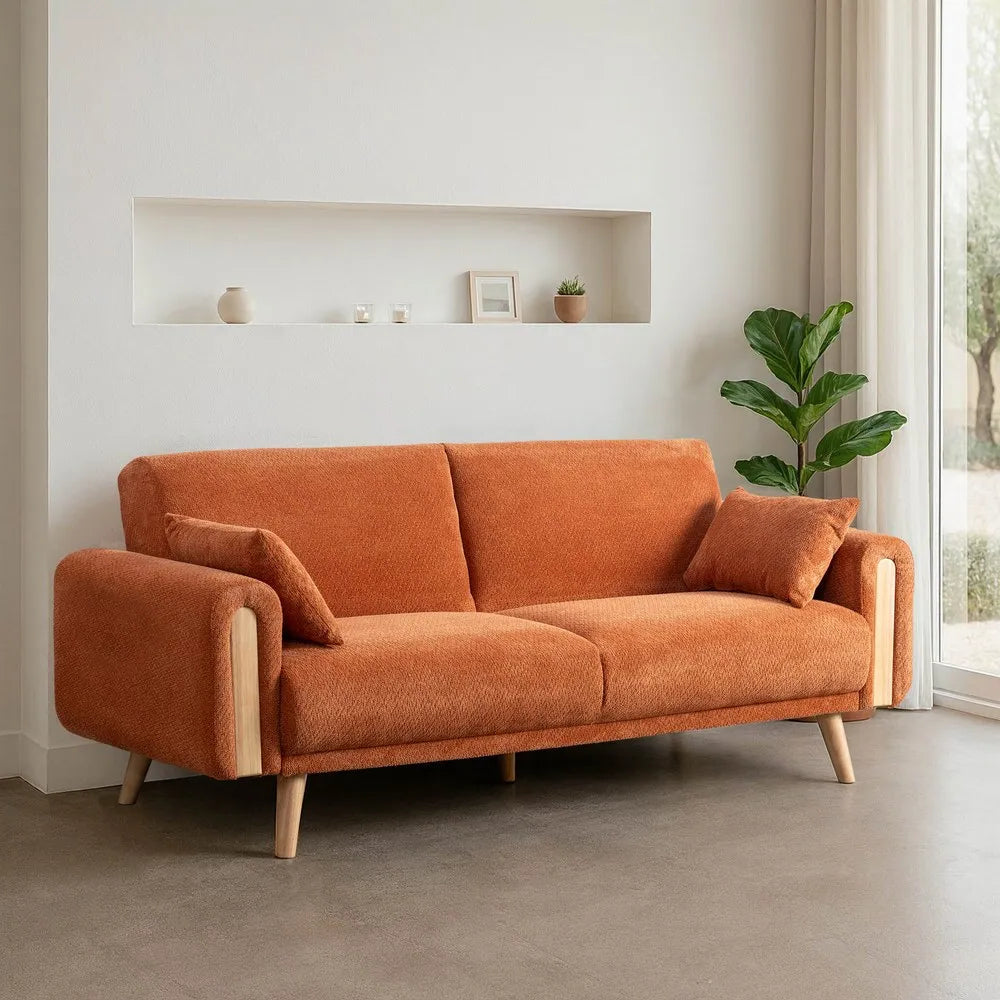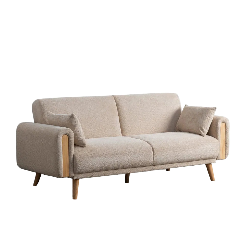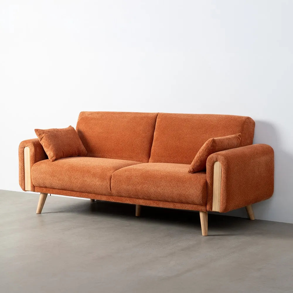 Canapea cu tesatura din 100% poliester, cadru din lemn de eucalipt, umplutura cu spuma PU, densitate 25 kg/m3.
