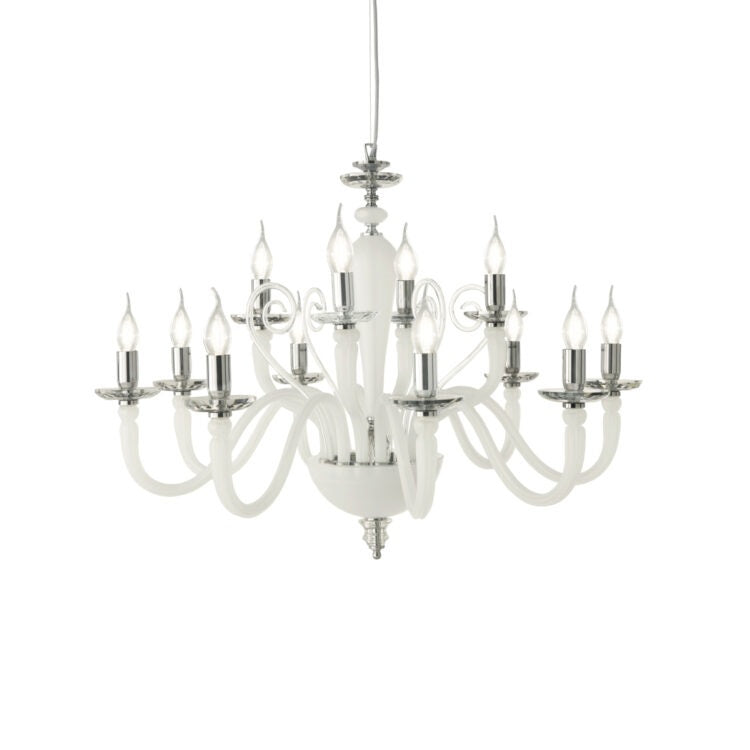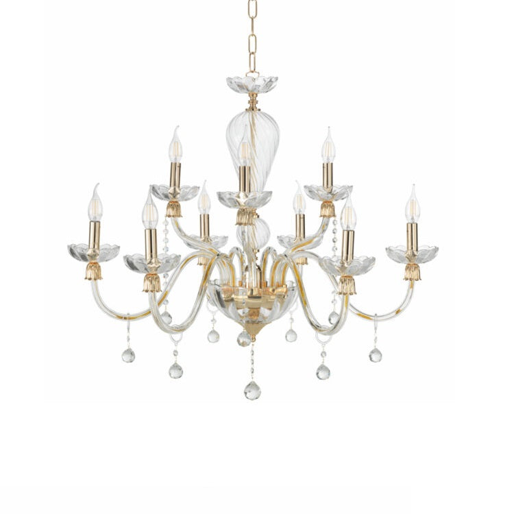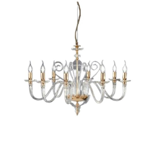 Candelabre clasice: Cu multe brațe, adesea din metal, cu ornamente elegante, poate chiar cristale, perfecte pentru decoruri elegante și tradiționale.