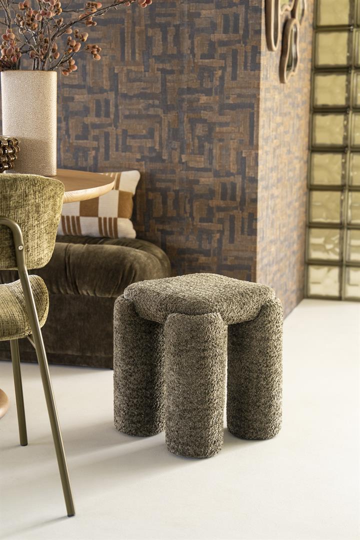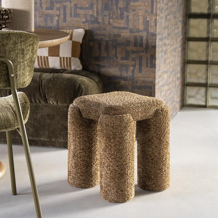 Taburet din lemn, umplutura cu spuma si tapiterie din material textil.