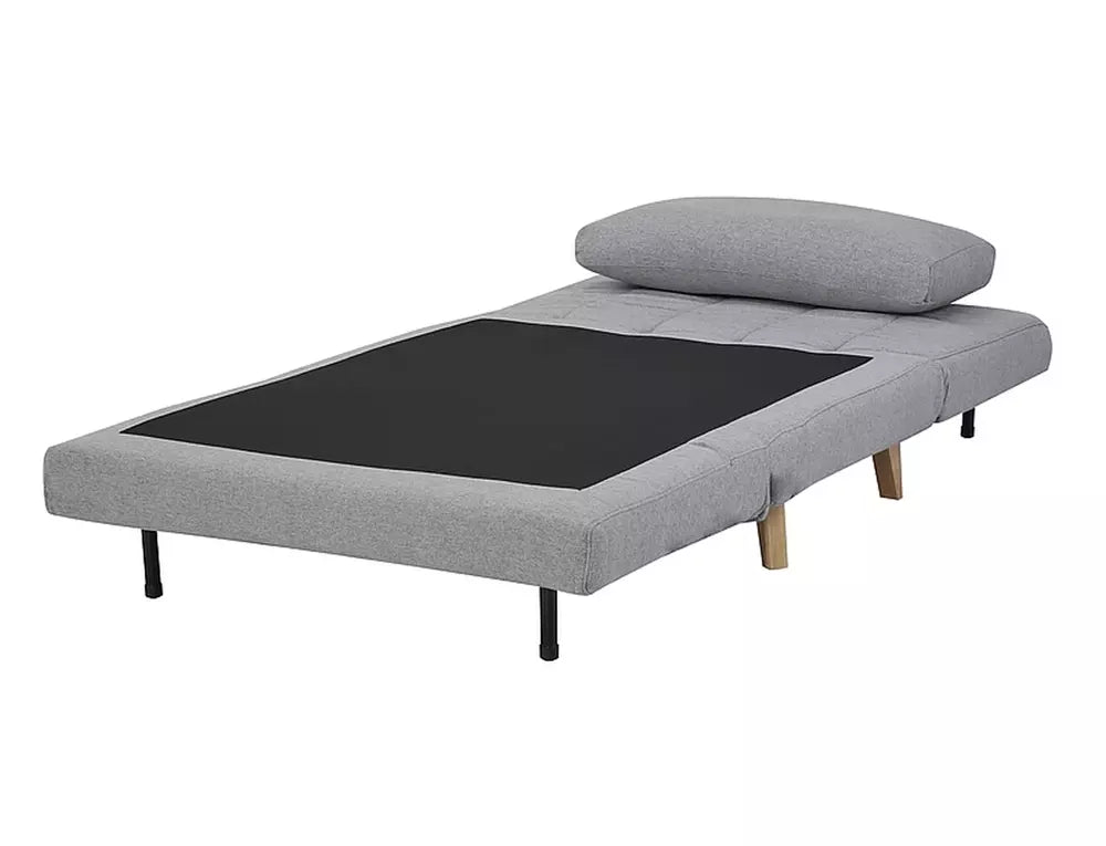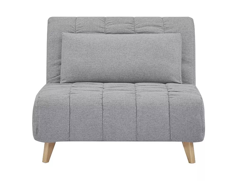 Fotoliu extensibil tapitata cu material textil, picioare din lemn masiv cu finisaj natural.