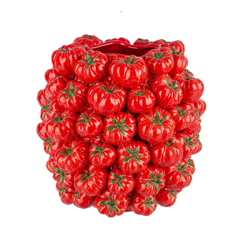 Vaza lucrata manual din ceramica, impermeabila la interior.
