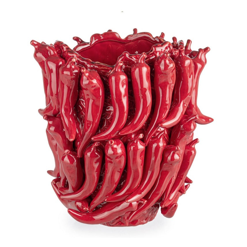Vaza lucrata manual din ceramica, impermeabila la interior.