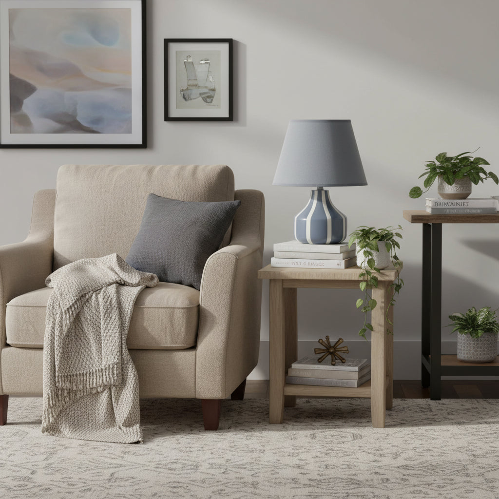 Veioza cu baza din ceramica si abajur din bumabc si poliester.