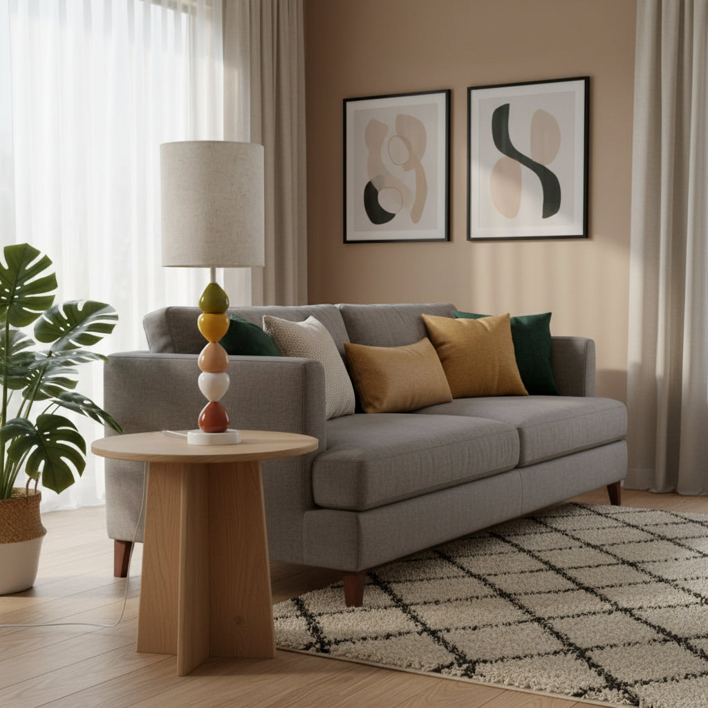 Veioza cu baza din ceramica, abajur textil si PVC.