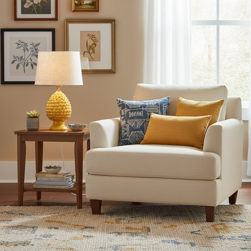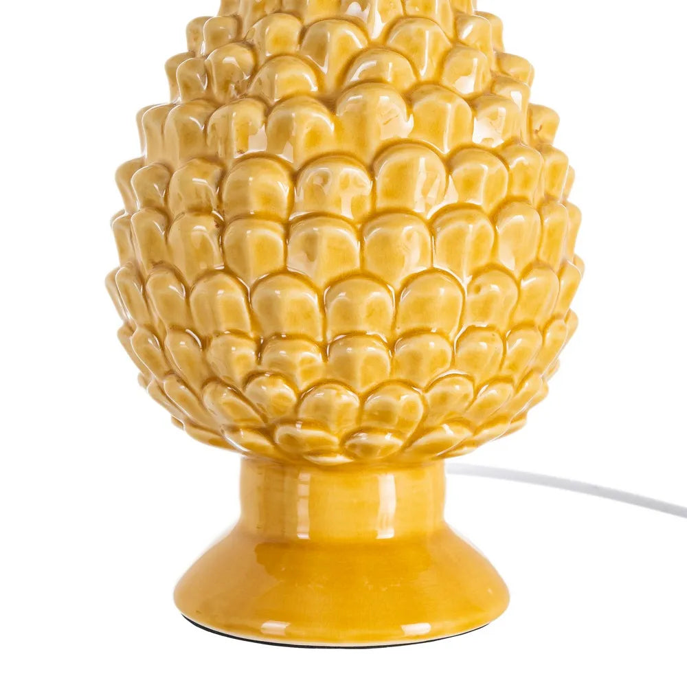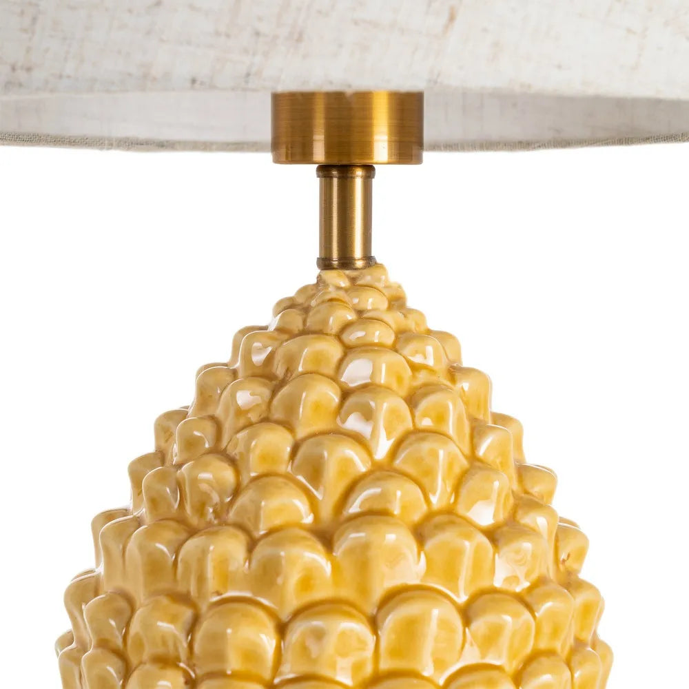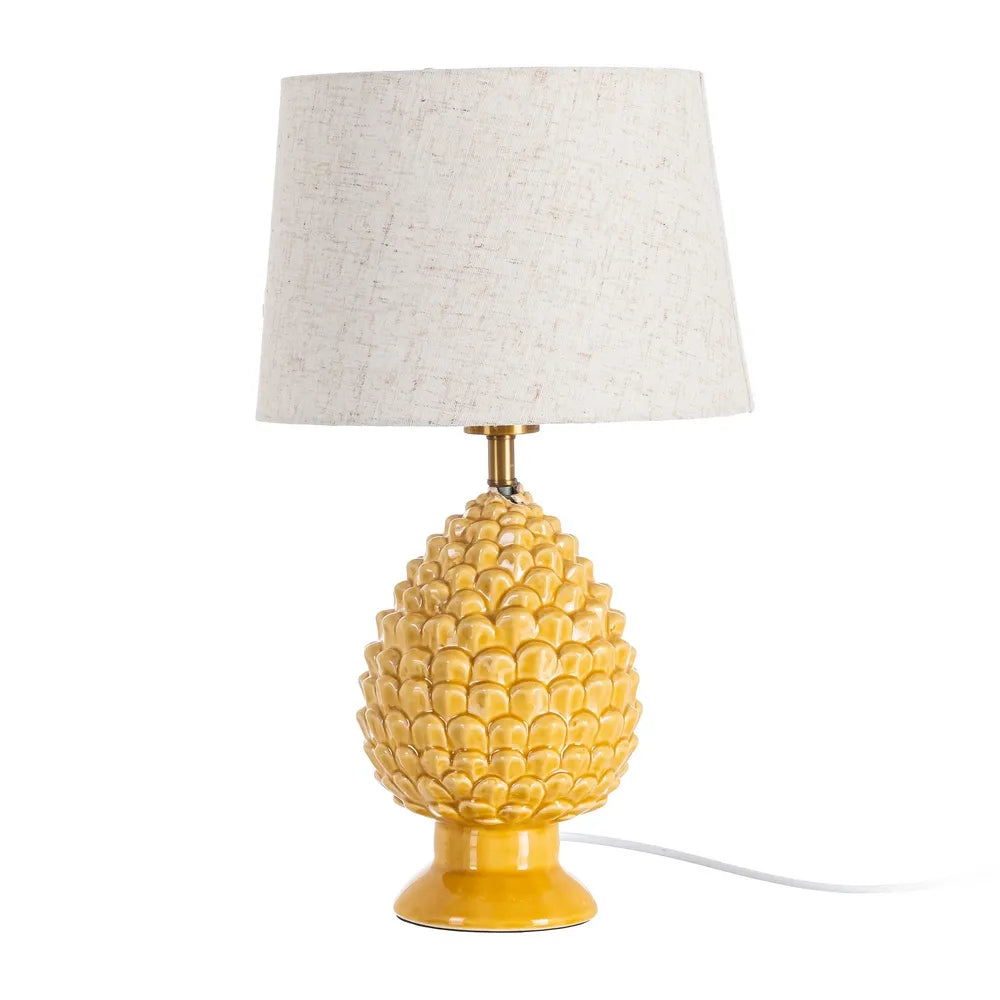 Veioza cu baza din ceramica si abajur din material textil si PVC.
