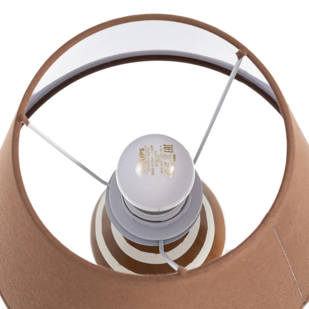 Veioza cu baza din ceramica si abajur din bumabc si poliester.