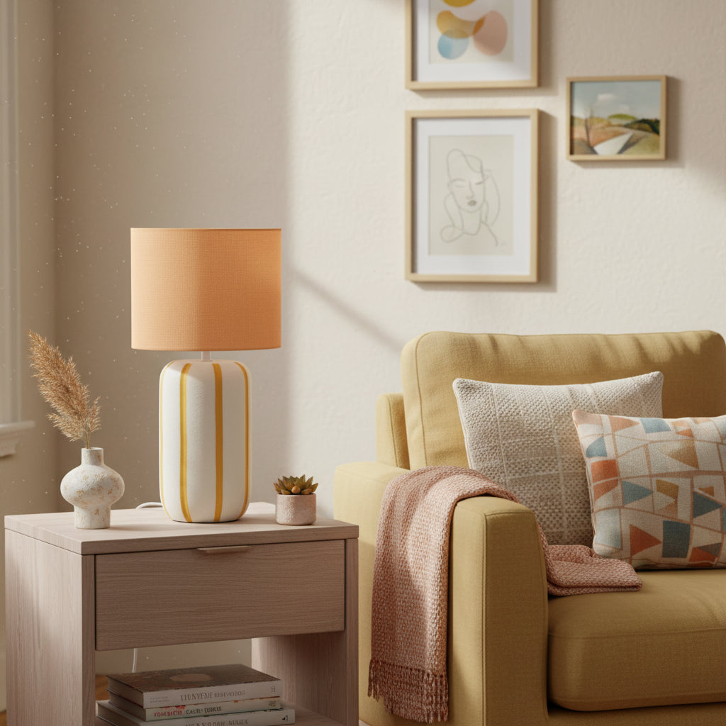 Veioza cu baza din ceramica, abajur textil si PVC.