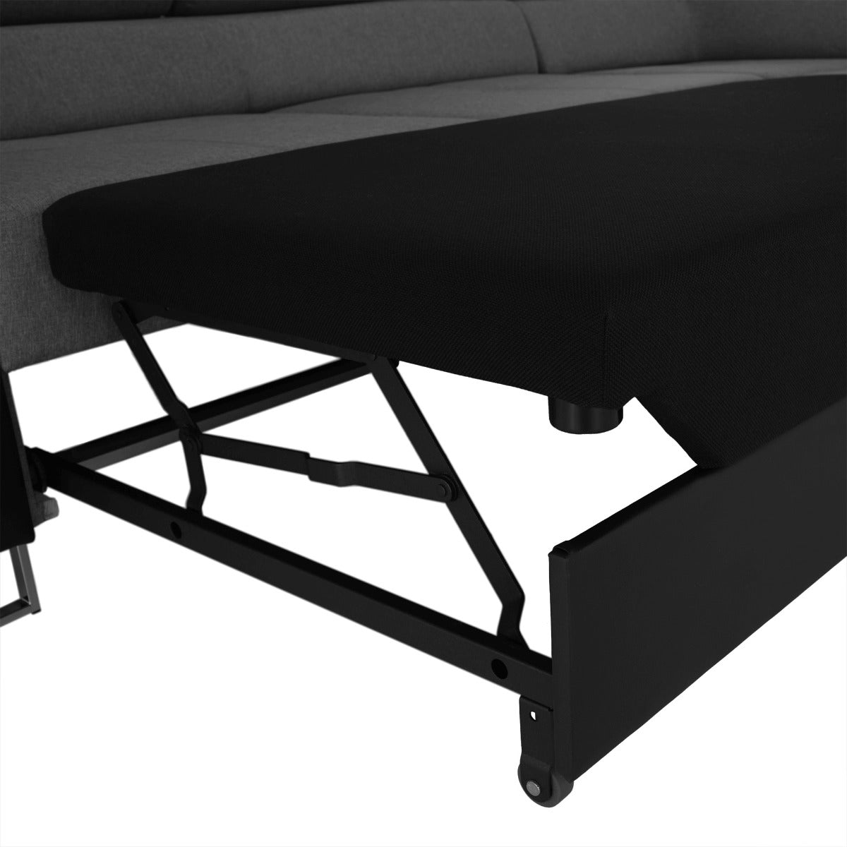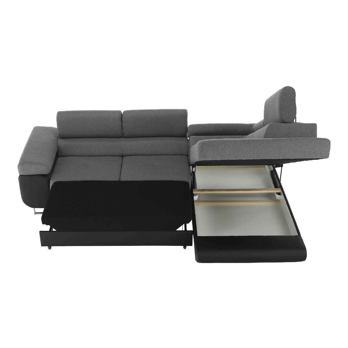 Coltar extensibil cu tapiterie din tesatura Lux si piele ecologica, tesatura rezistenta la uzura 100.000 cicluri de frecare, cu spatiu de depozitare.