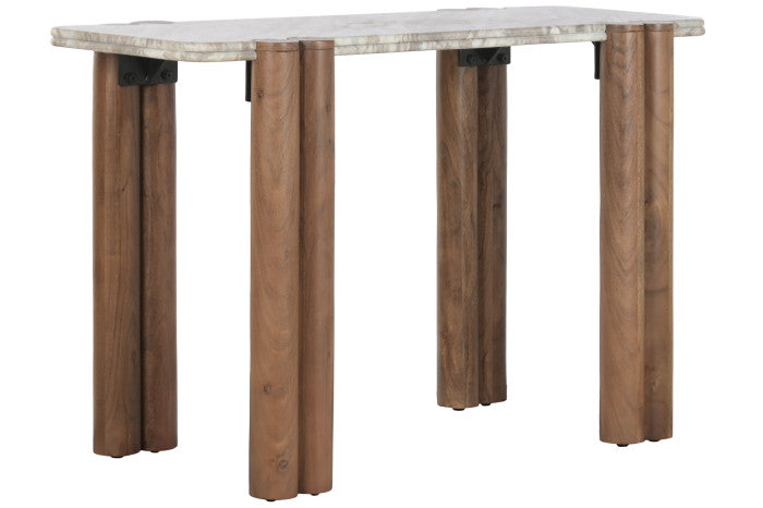 Consola cu picioare din lemn de mango si blat din marmura.
