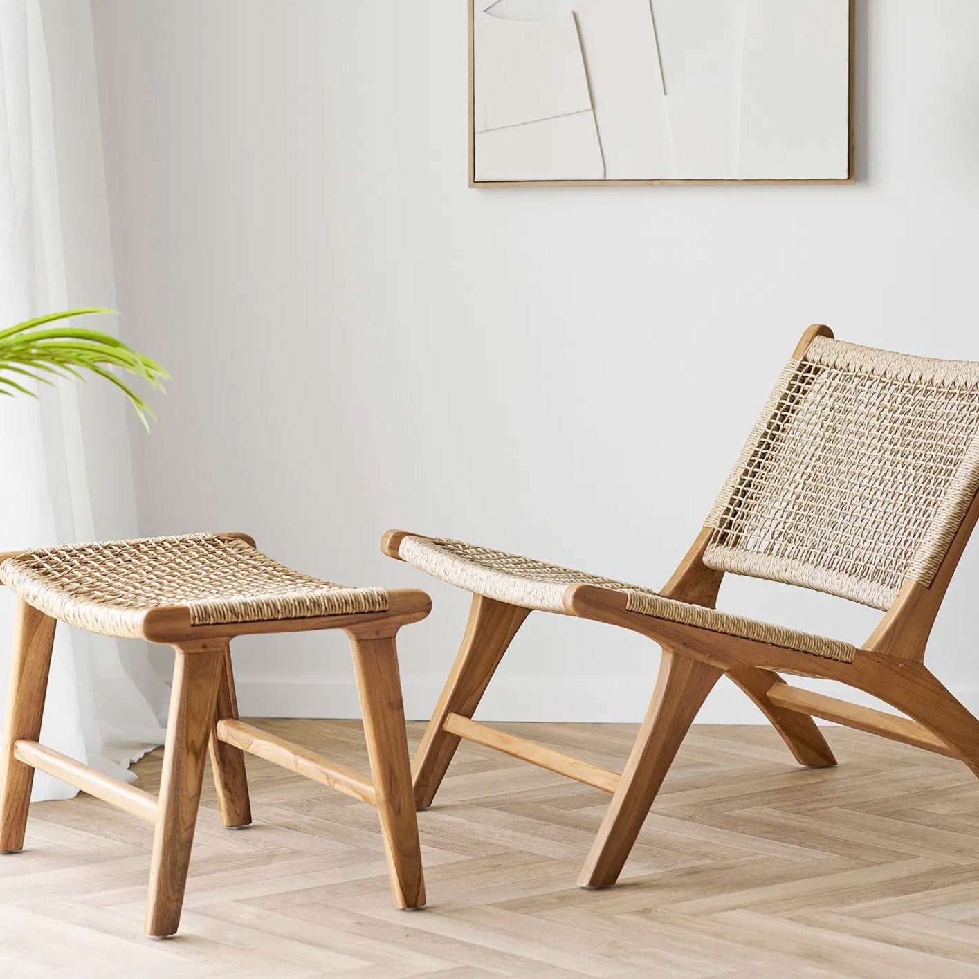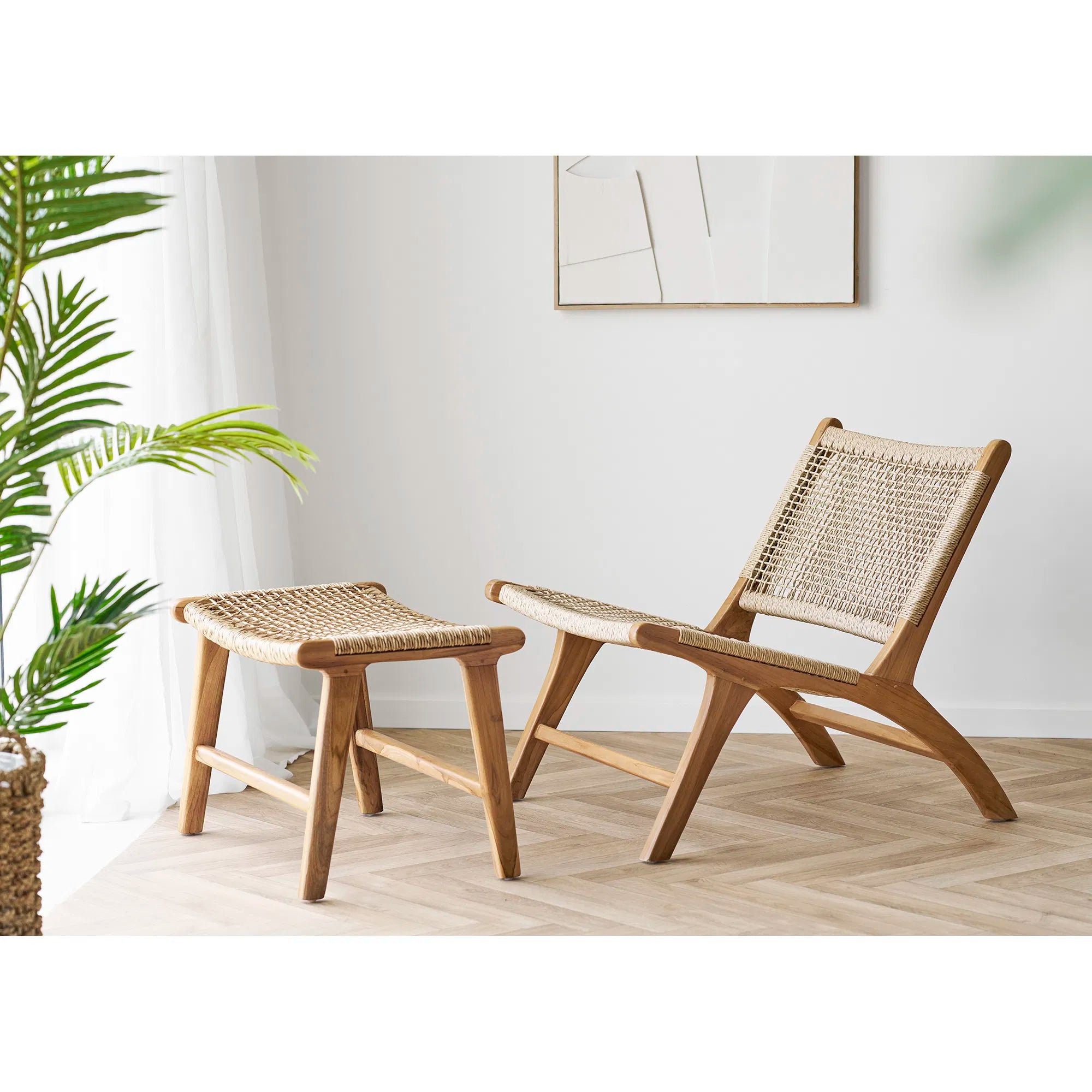 Fotoliu cu taburet, din lemn de tec si ratan PE.
