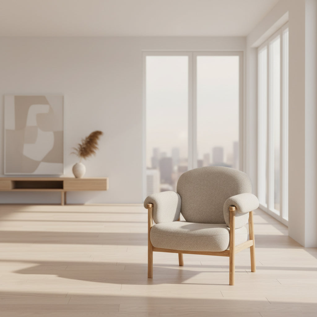Fotoliu cu structura din lemn de mesteacan, tapiterie din poliester, umplutura din spuma poliuretanica.