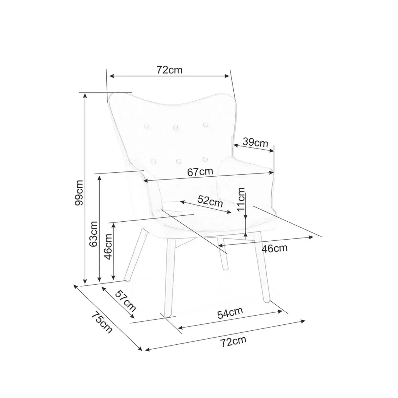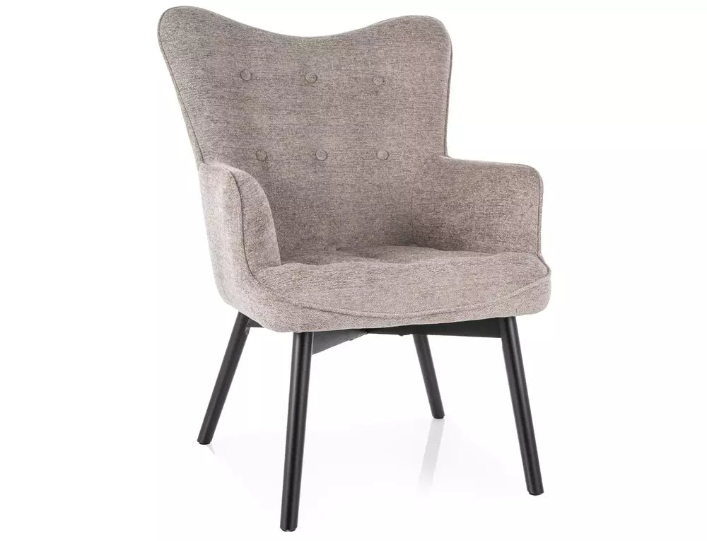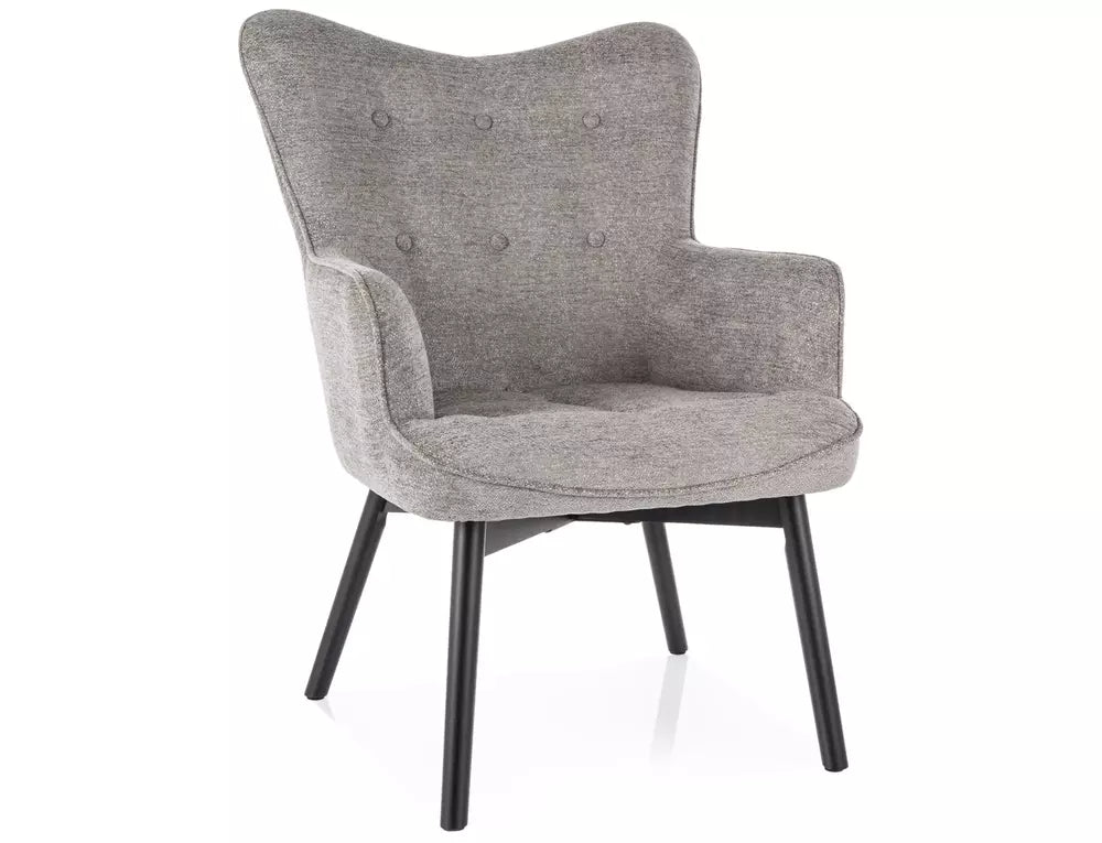 Fotoliu cu tapiterie din material textil, cadru din lemn culoare negru mat.
