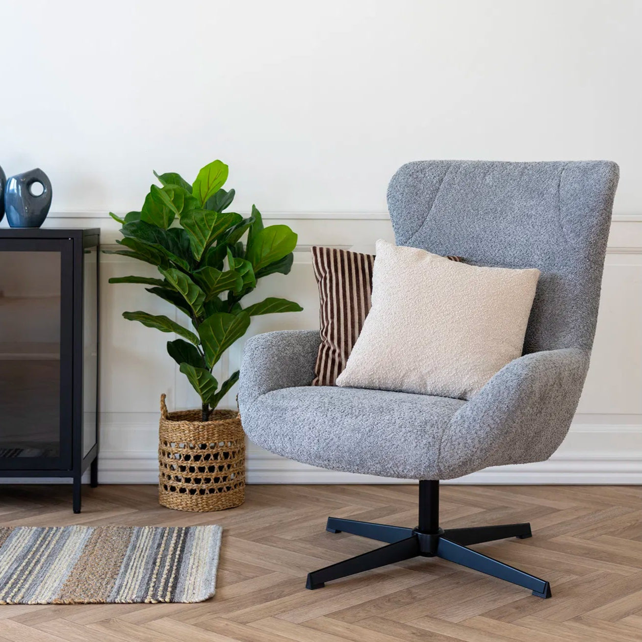 Fotoliu rotativ cu structura din otel, placaj, metal, tapiterie din 100% poliester, umplutura cu spuma poliuretanica cu densitate 24 kg/m3.