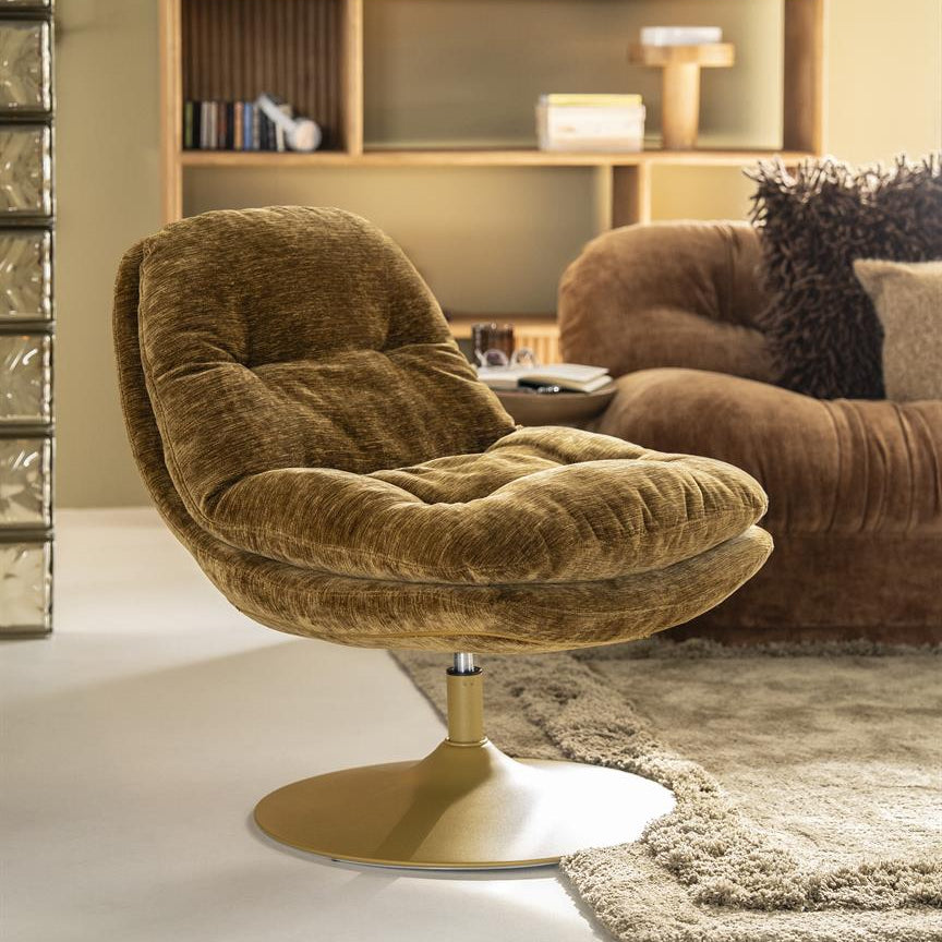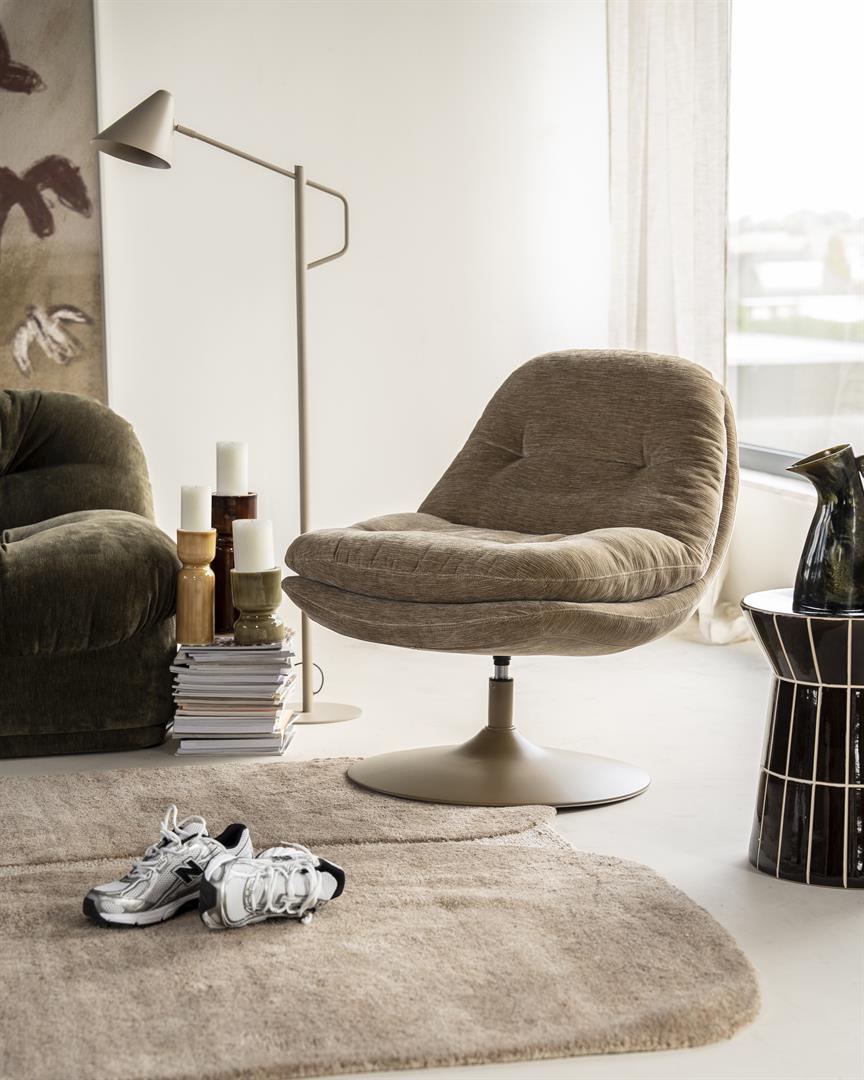 Fotoliu rotativ la 360 grade, din metal si material textil.