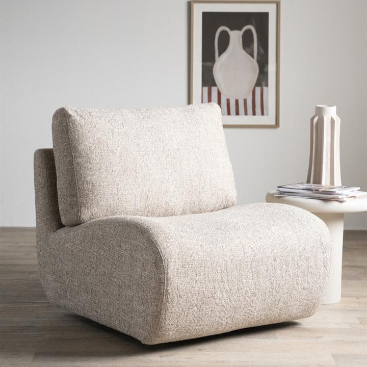 Fotoliu rotativ la 360 grade, din lemn si tapiterie din material textil.