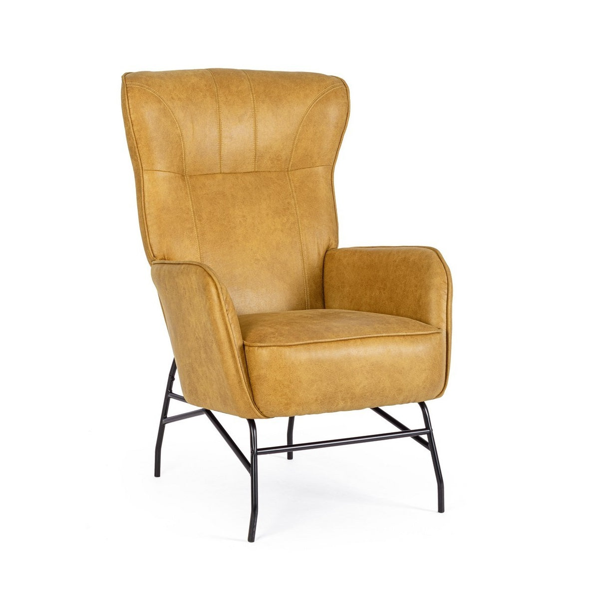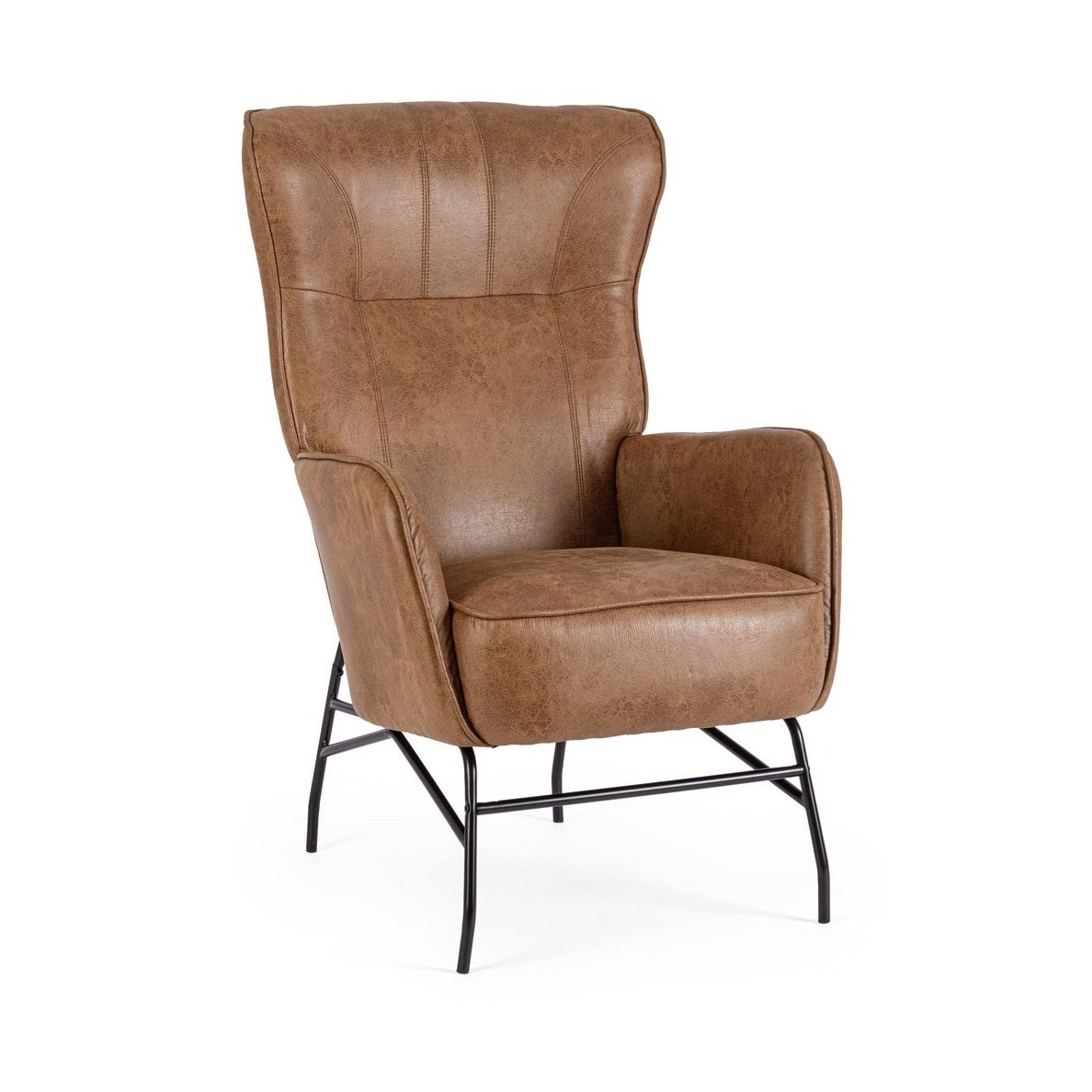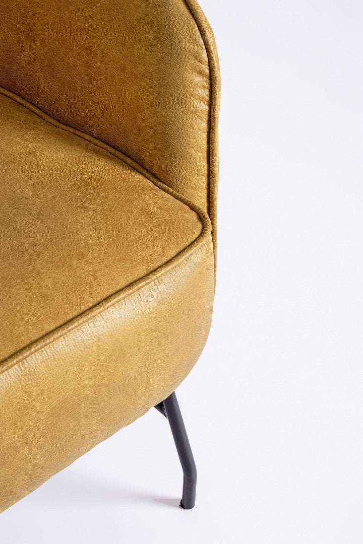 Fotoliu in stil nordic, cu structura din otel, picioare din otel vopsite cu pulbere in camp electrostatic, tapiterie din imitatie de piele si umplutura cu spuma poliuretanica.
