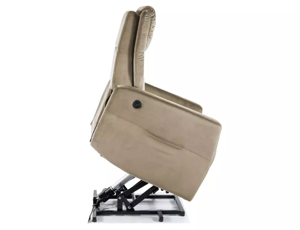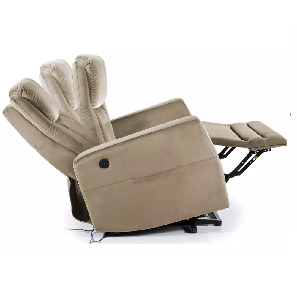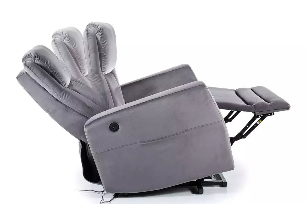 Fotoliu rabatabil electric, cu port USB, tapitat cu catifea.