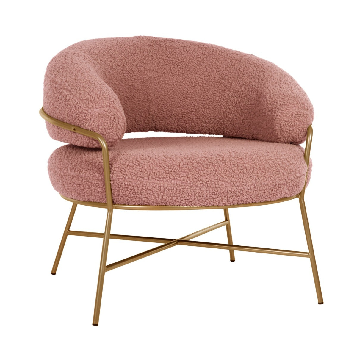 Fotoliu robust si durabil, cu tapiterie boucle moale si calduroasa, picioare metalice aurii.
