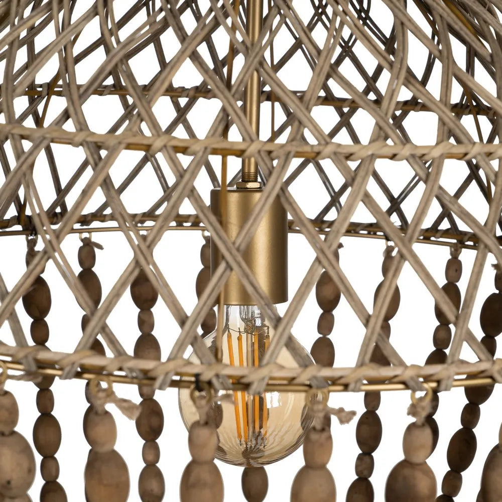 Lampa suspendata cu structura din metal si margele din lemn DM, ratan .