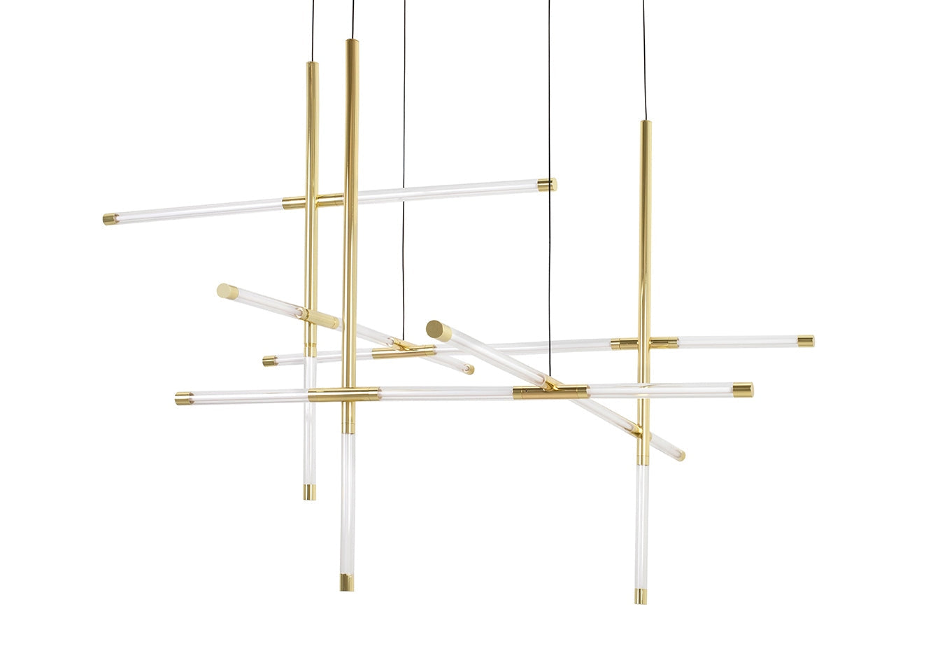 Designul lămpii se bazează pe tije subțiri fin intersectate, care se termină în surse subtile de lumină.