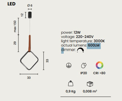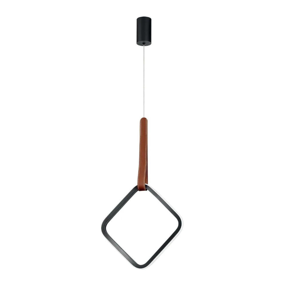 Lampa suspendata din metal vopsit și element din piele ecologică. Cabluri reglabile