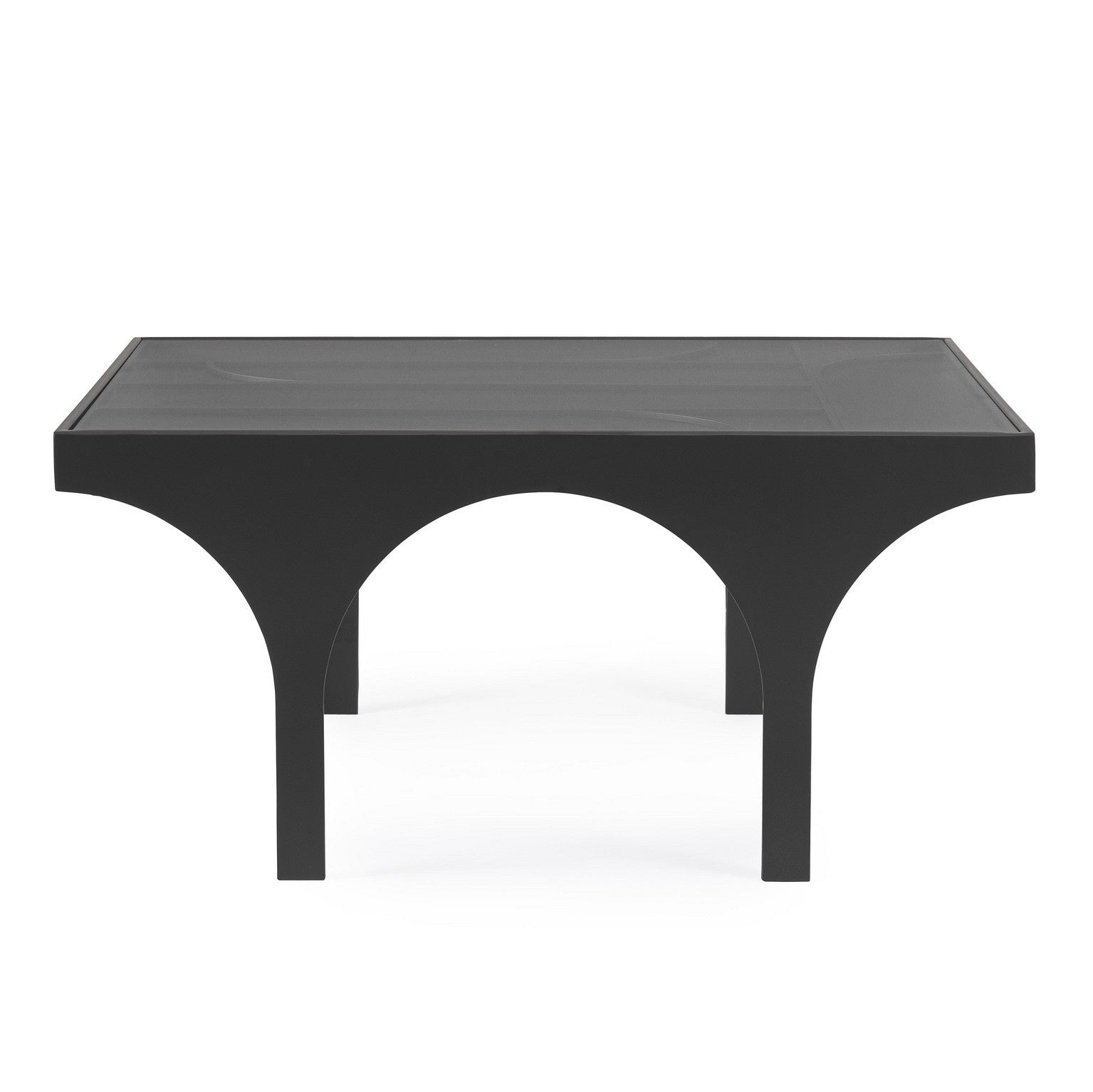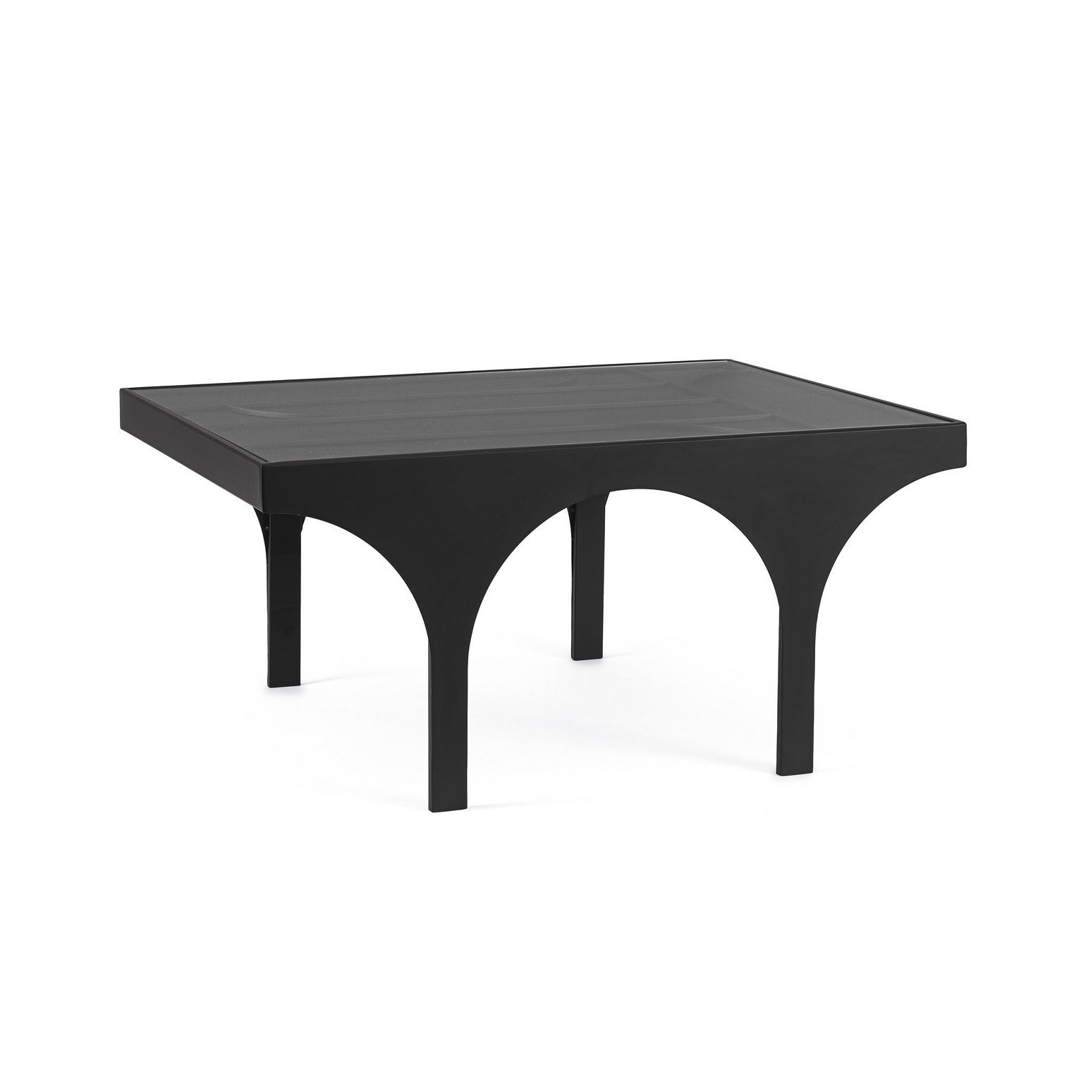 Masuta de cafea cu baza din otel vopsit cu pulbere in camp electrostatic, blat din sticla temperata.