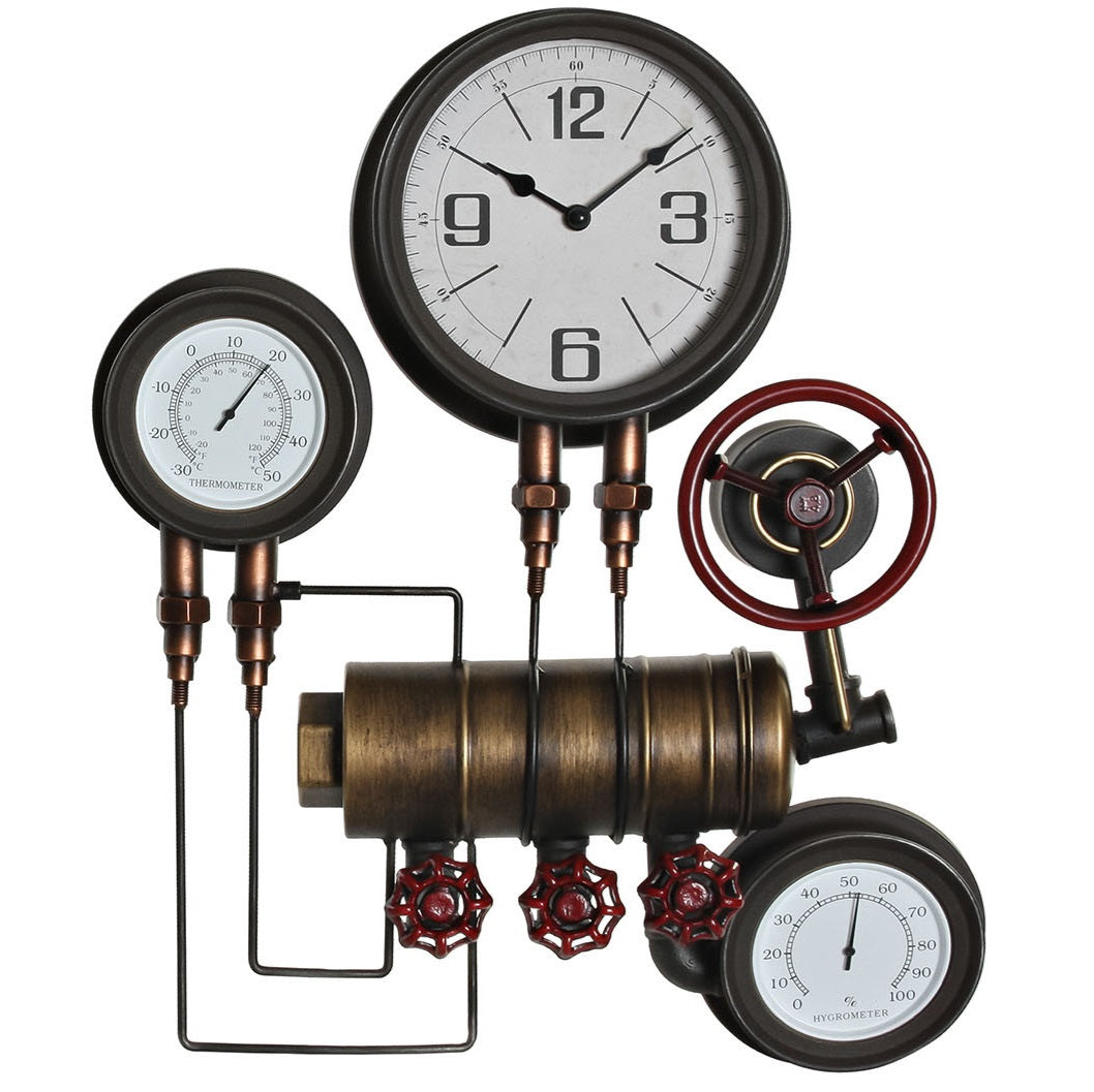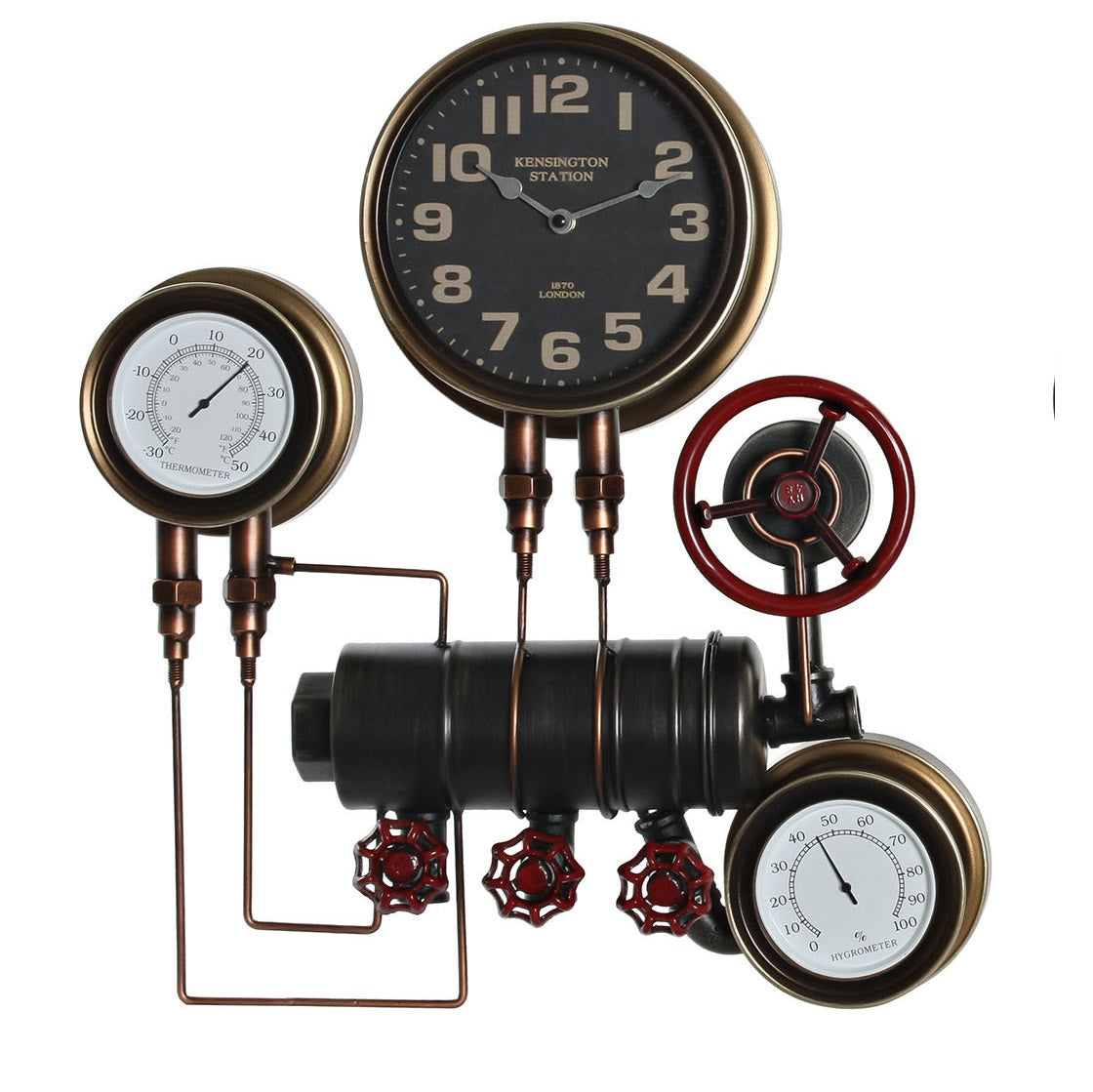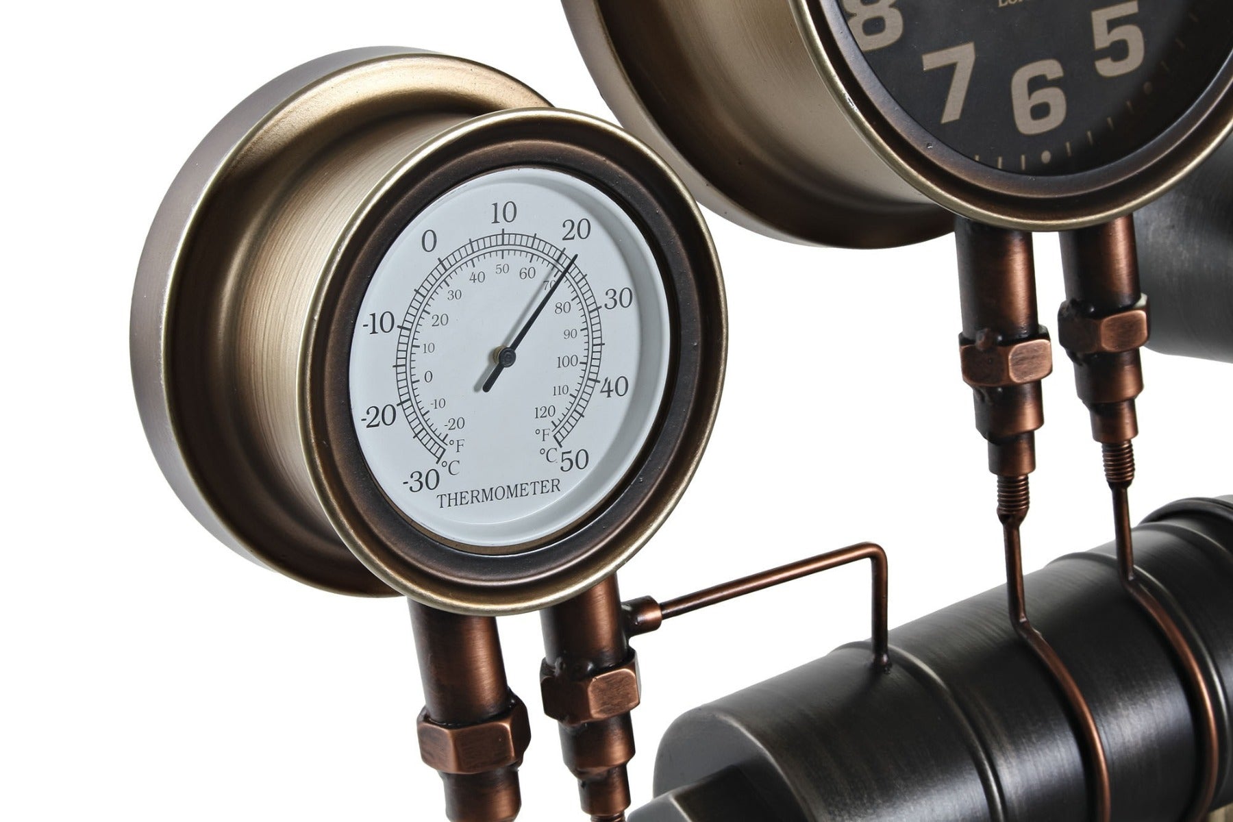 Set 2 ceasuri cu termometru, din fier, in stil industrial.
