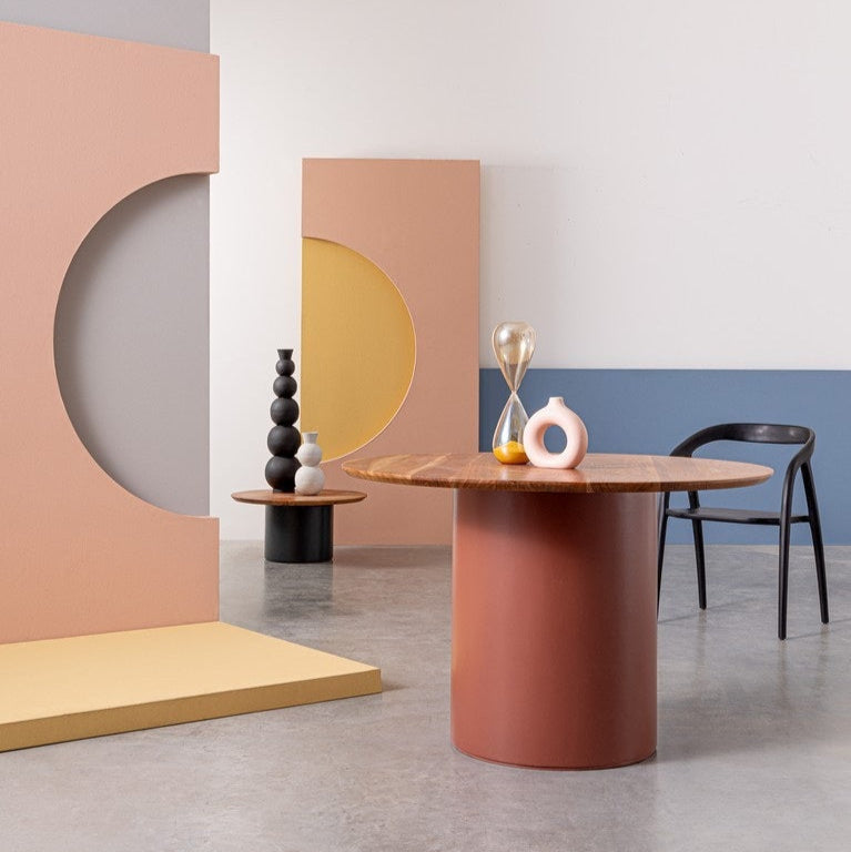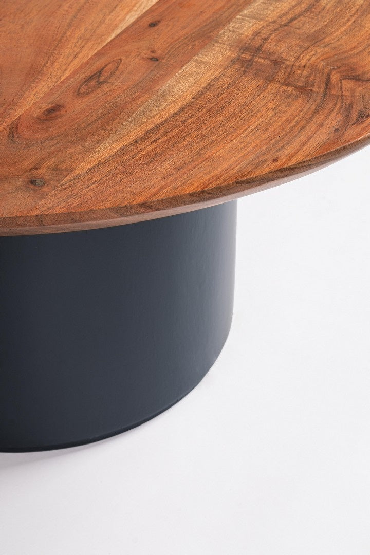 Masuta rotunda cu blat din lemn masiv de salcam, baza din lemn de salcam si MDF.