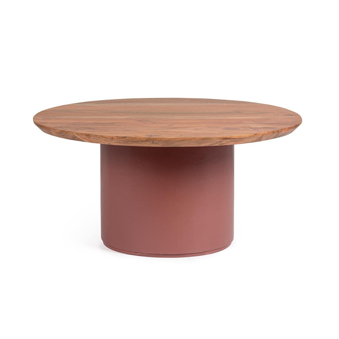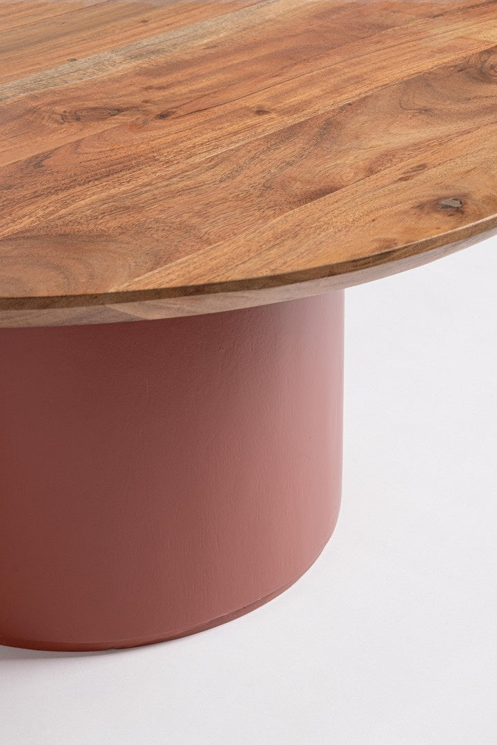 Masuta rotunda cu blat din lemn masiv de salcam, baza din lemn de salcam si MDF.