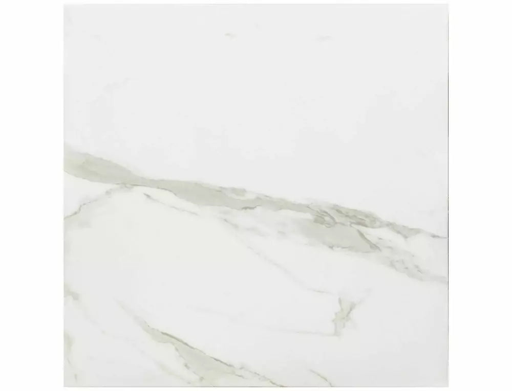 Masuta moderna cu cadru din otel finisat auriu si blat de sticla securizata cu efect de marmura alba.
