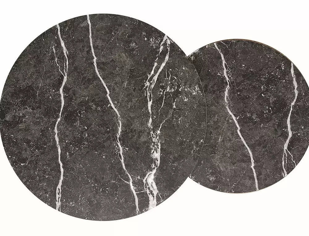 Set doua masute de cafea cu blat din PAL laminat cu efect de marmura/lemn si cadru din metal.