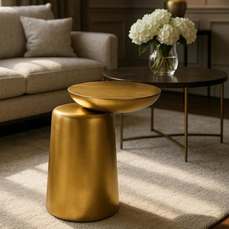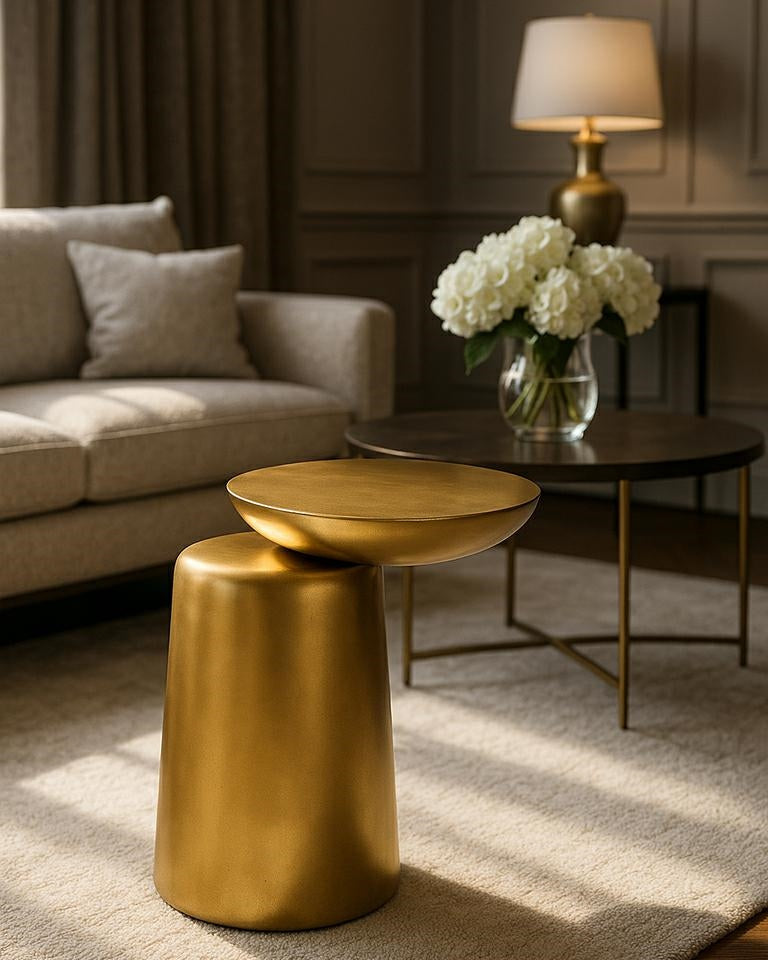 Culoarea aurie îi conferă un luciu rafinat, făcând-o o măsuță decorativă ideală într-un living, dormitor sau spațiu comercial.