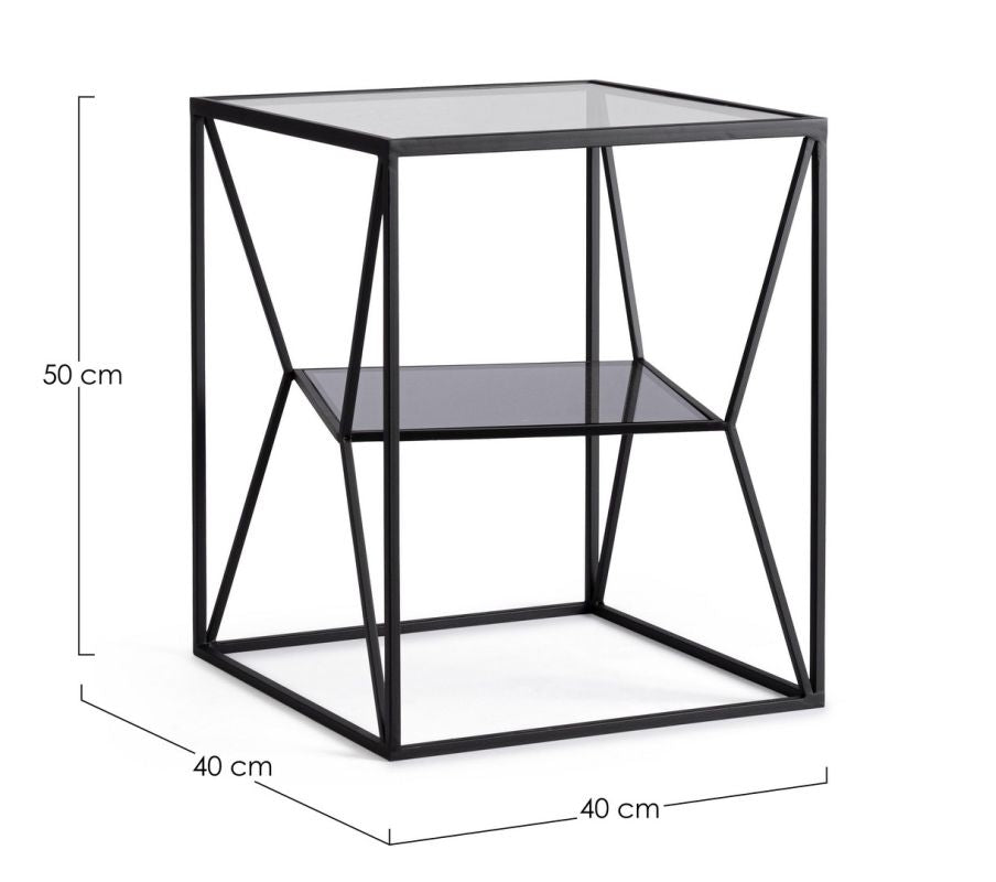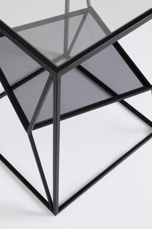 Masuta de cafea cu cadru din otel vopsit cu pulbere in camp electrostatic si blaturi din sticla securizata.