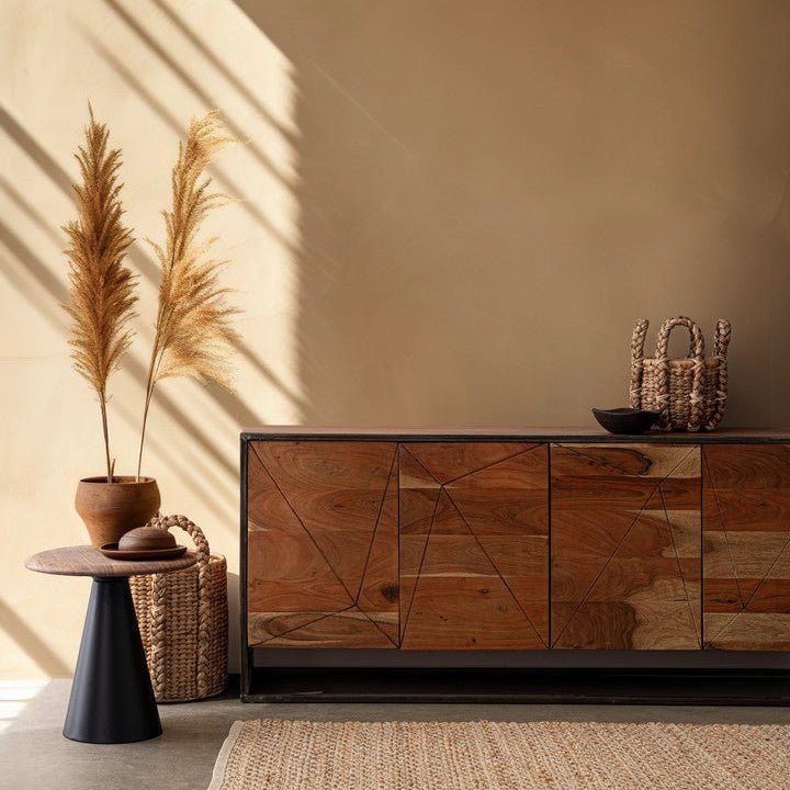 Masuta de cafea cu blat din lemn de salcam, finisaj natural. Baza din otel vopsit cu pulbere epoxidica in camp electrostatic.