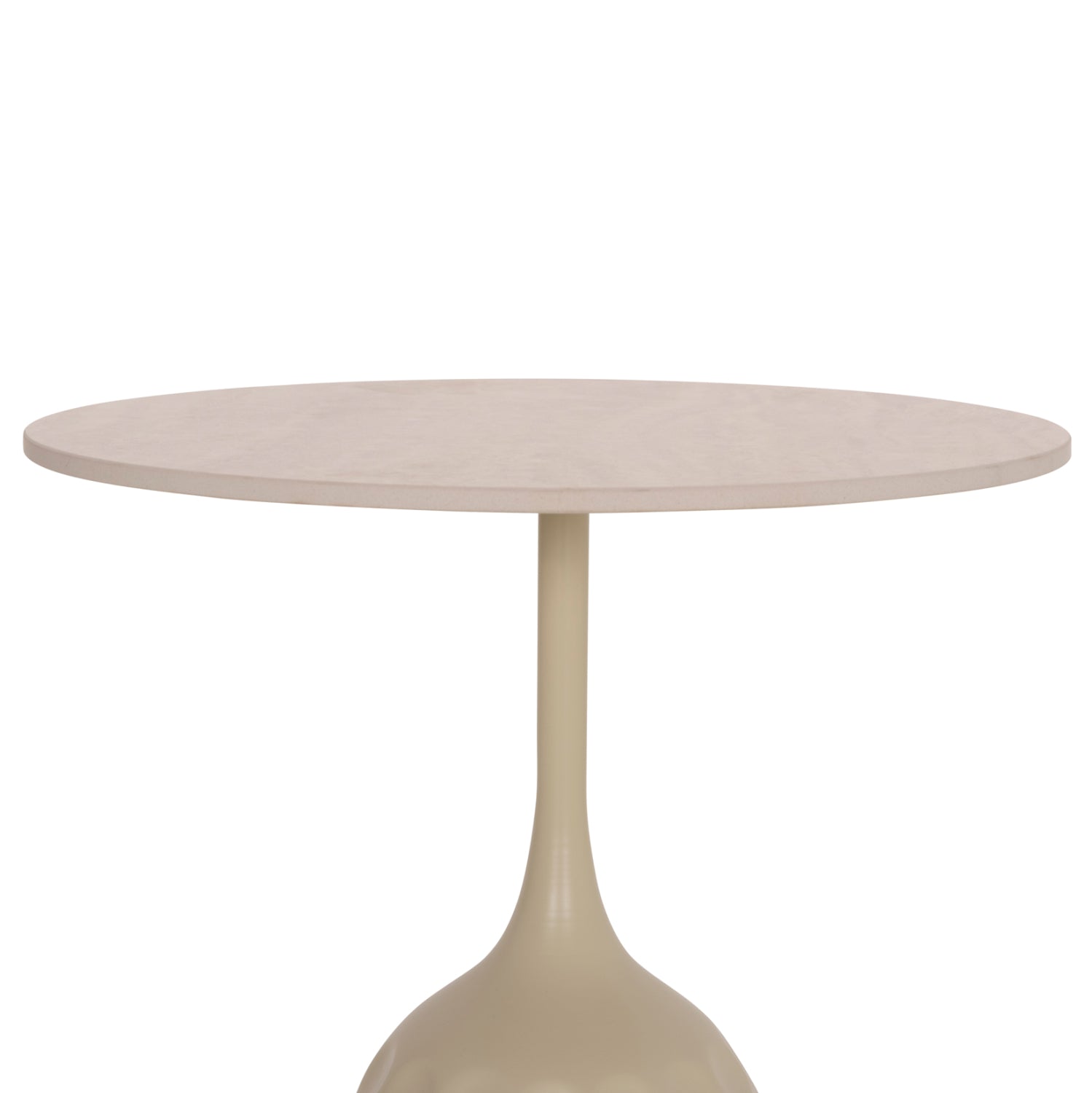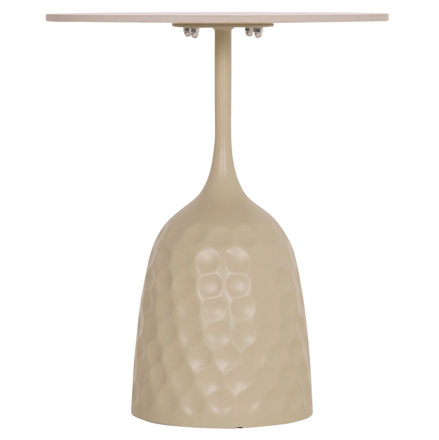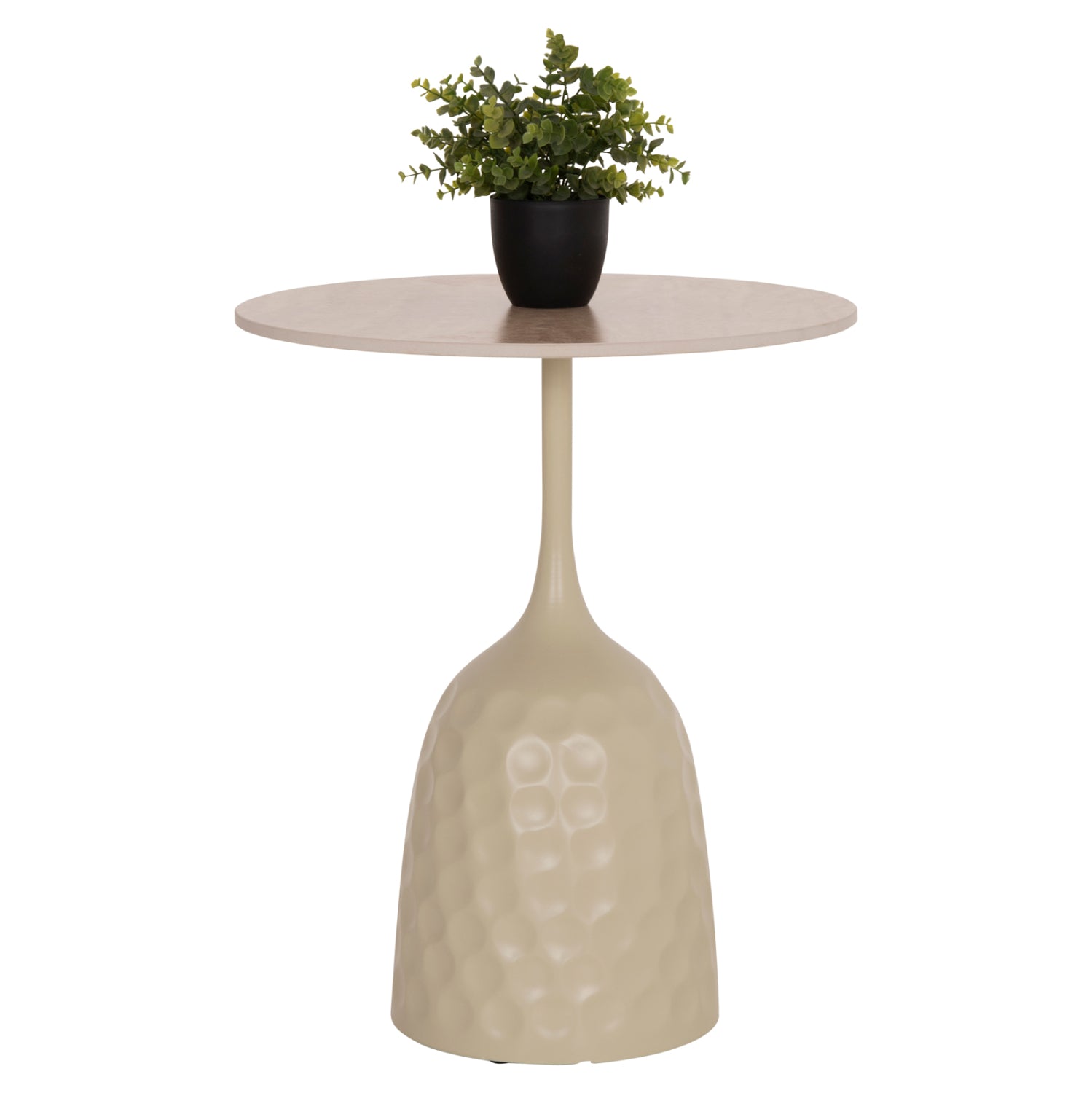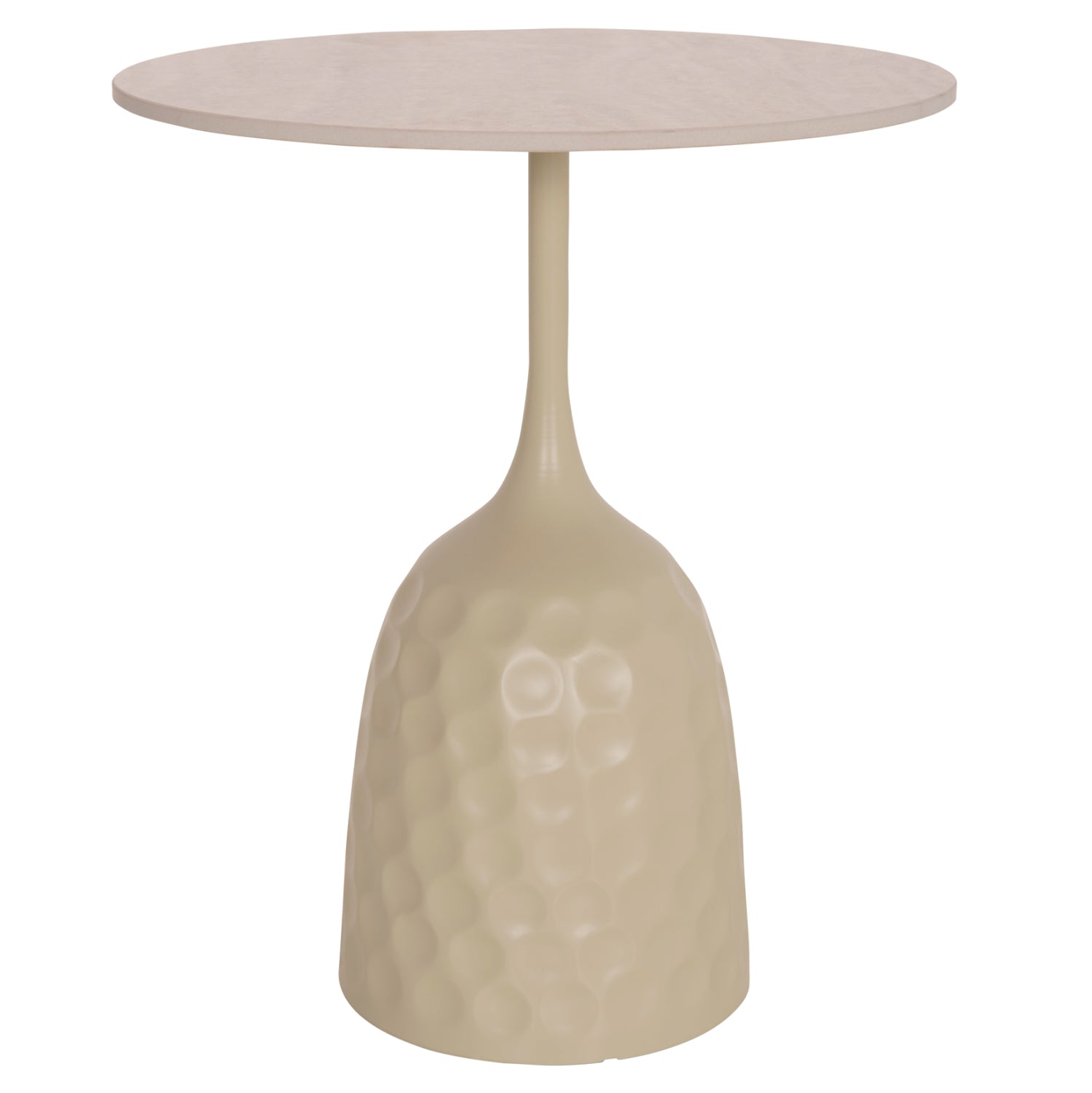 Masuta de cafea cu baza cilindrică înaltă este metalică, cu un stil punctat în culoarea CHAMPAGNE, în timp ce blatul rotund este din ceramică în nuanța TRAVERTINE STONE. Ideală atât pentru spații domestice, cât și profesionale.