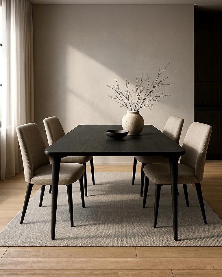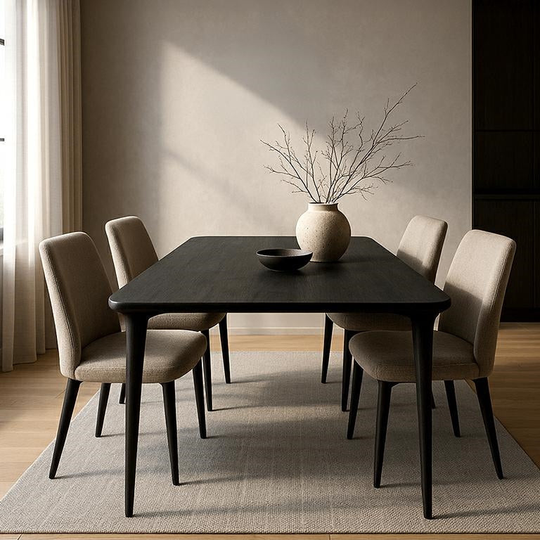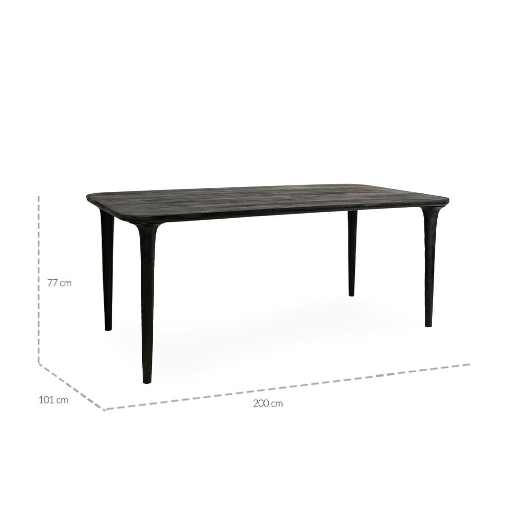 Fabricată din lemn masiv de mango și finisată în negru intens, impresionează prin marginile ușor rotunjite și baza subțire.