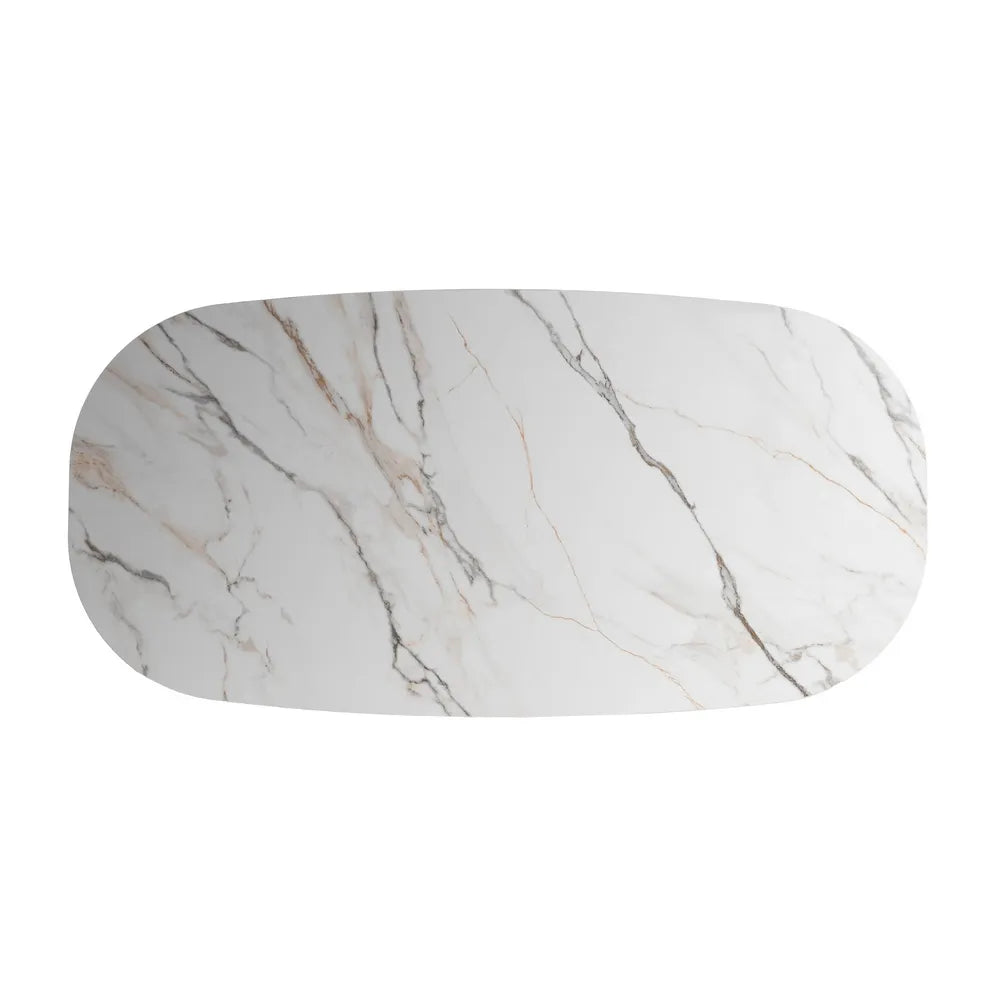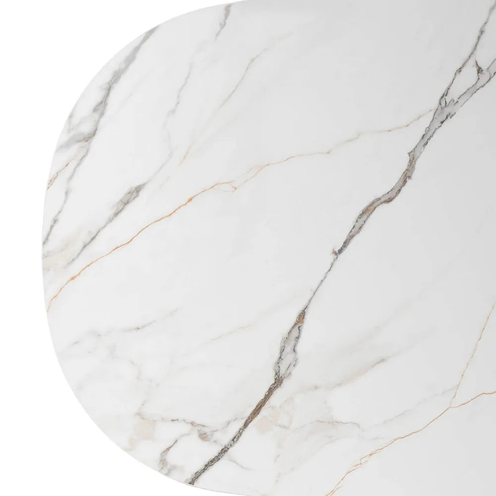 Masa cu picior din MDF, blat ceramic cu efect de marmura de 6mm.