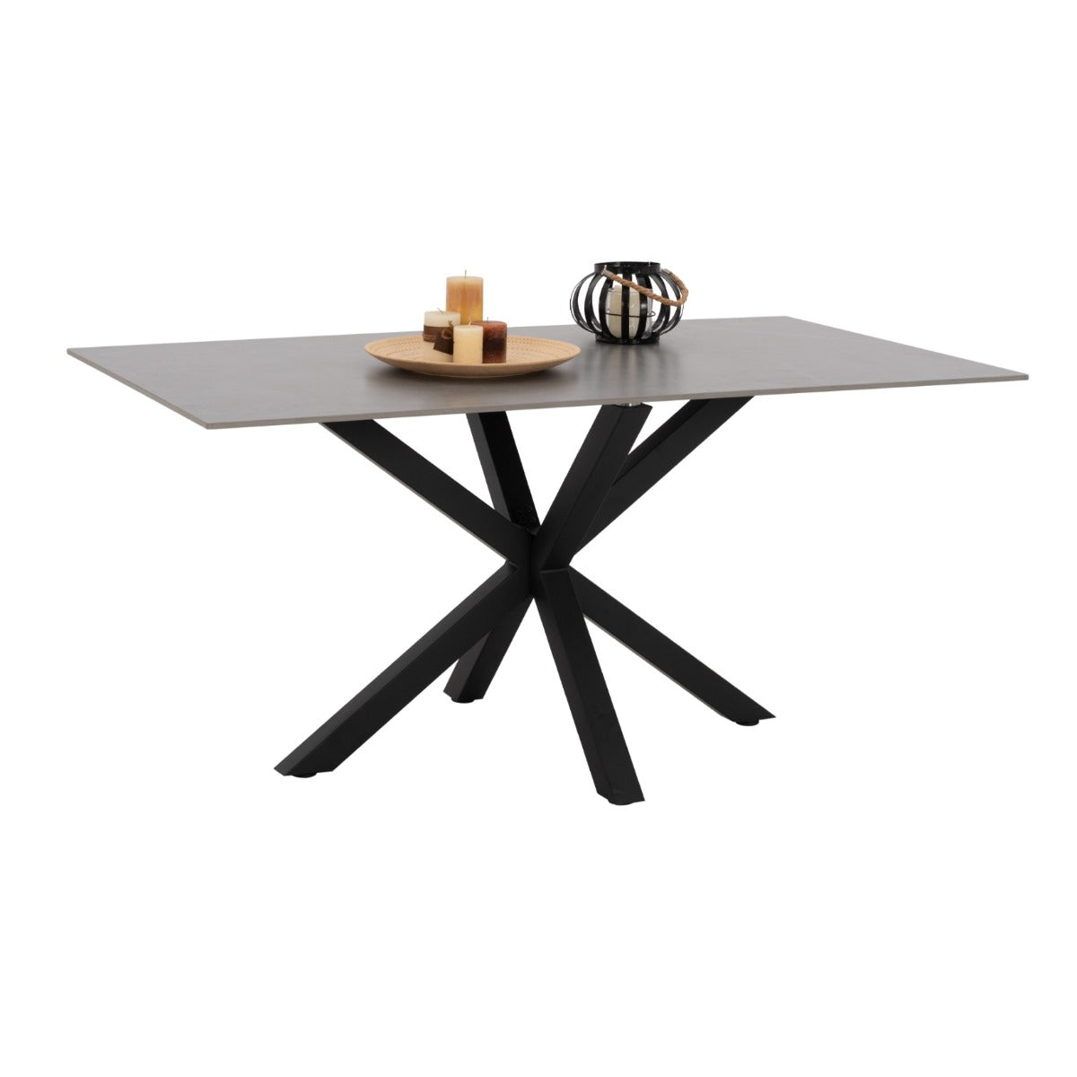 Masa cu blat din piatra sinterizata cu aspect de marmura gri sau neagra, picioare din metal ce pot fi ajustate pentru o mai buna stabilitate.