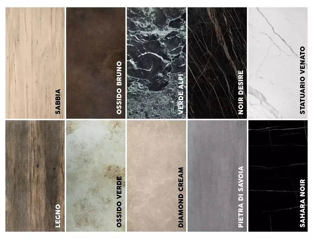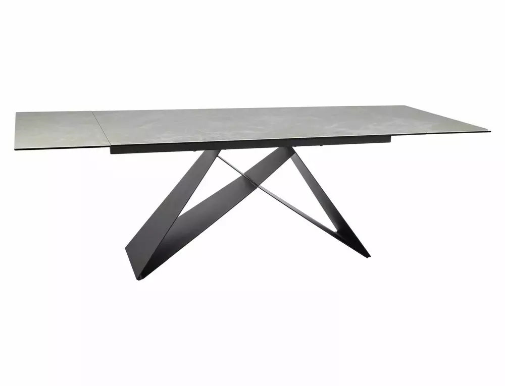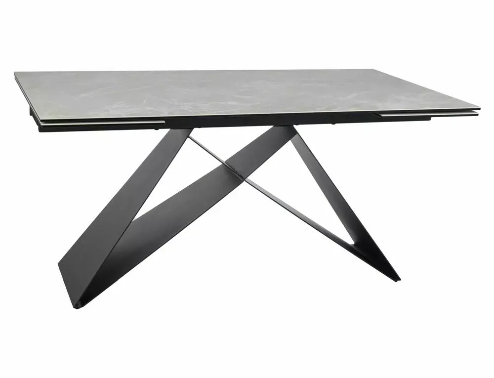 Masa extensibila cu blat din sticla securizata si ceramica DIAMOND CREAM (crem mat), cadru din metal negru mat.