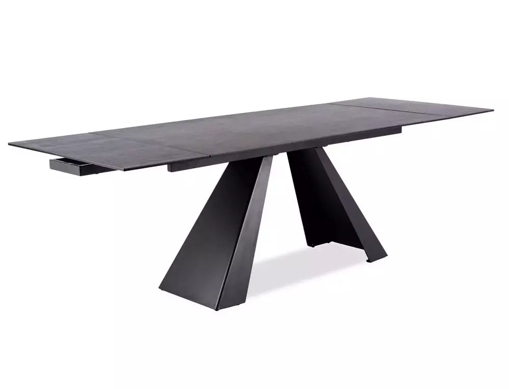 Masa extensibila cu blat din sticla securizata si ceramica italiana culoare antracit, cadru din metal negru mat.