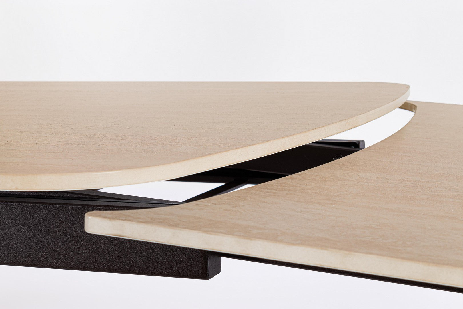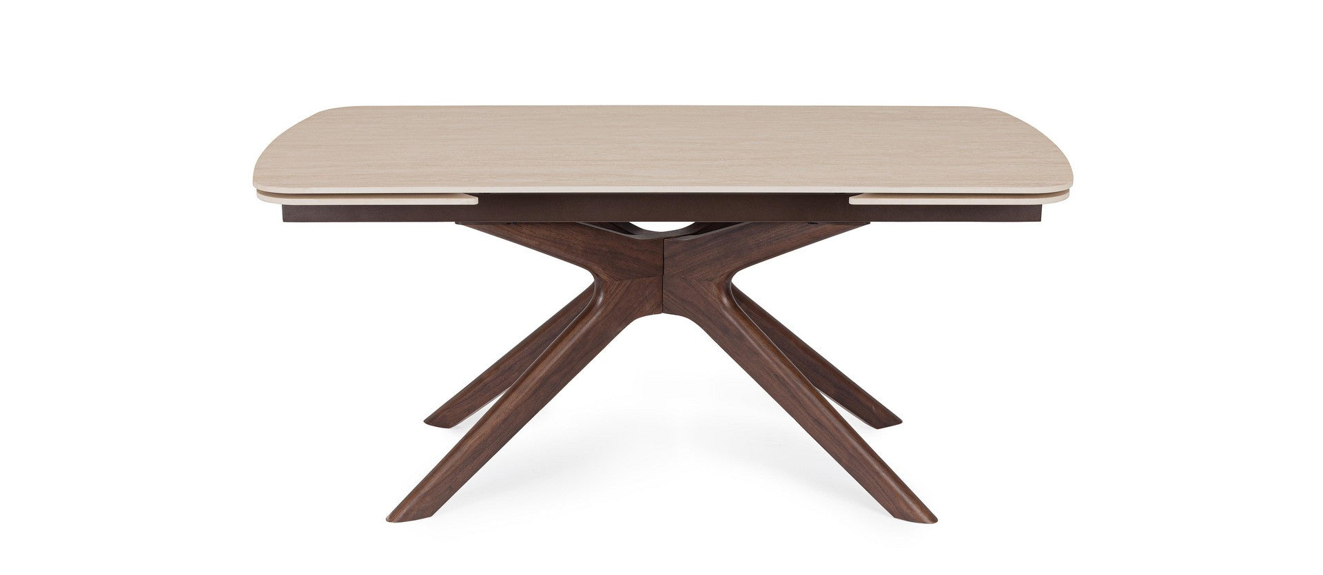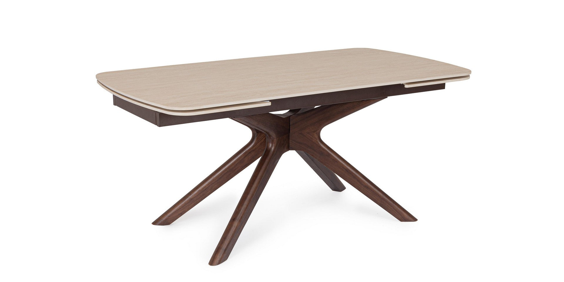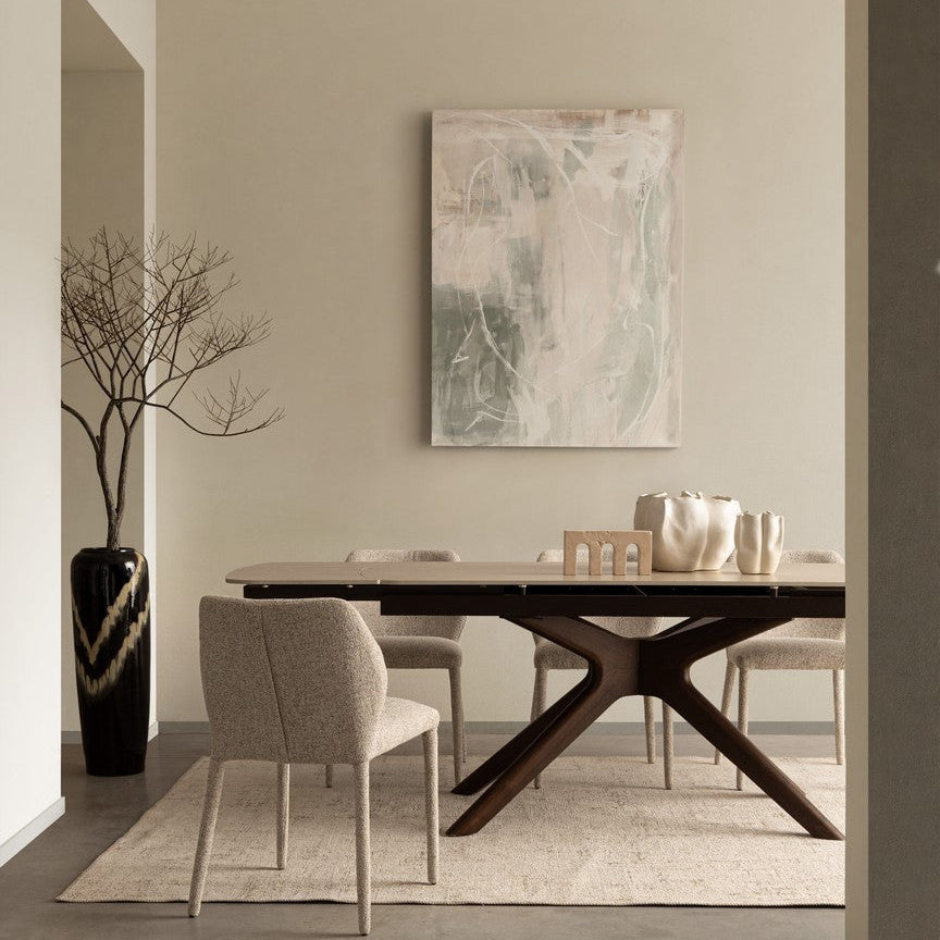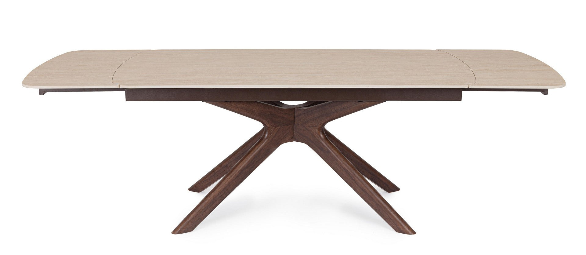Masa extensibila cu blat din portelan cu efect de travertin.