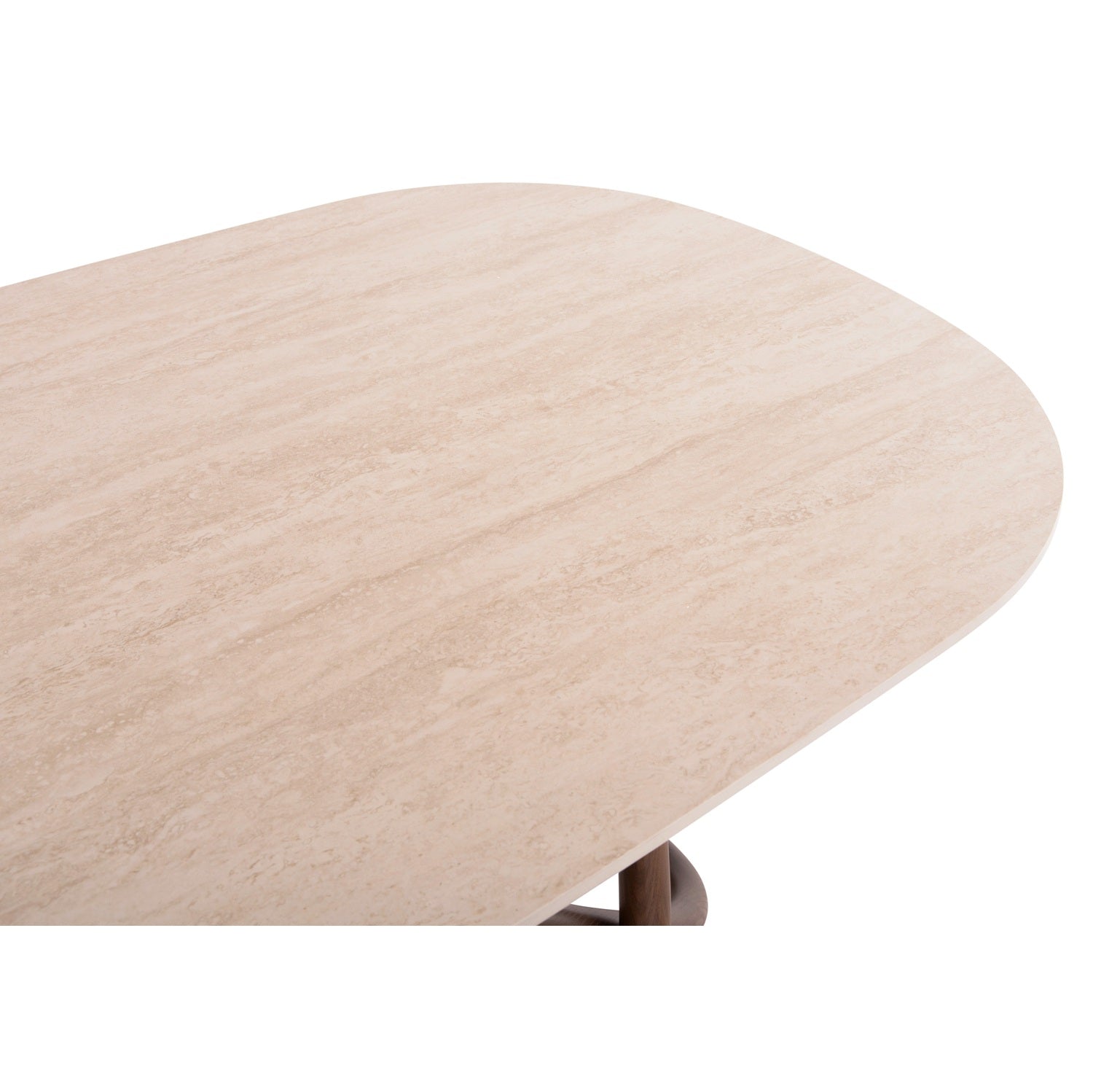 Această masă de dining are un blat ceramic teșit într-o nuanță de travertin CREM!
