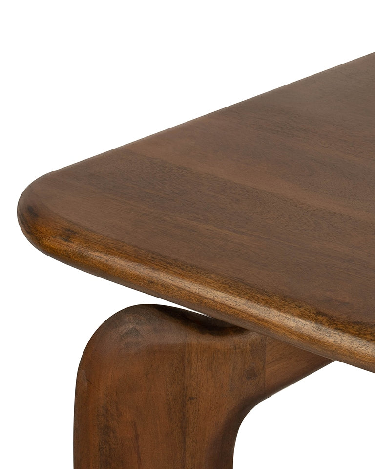 Fabricată în întregime din lemn natural de mango, captivează prin nuanța sa caldă de maro și finisajul subtil, subliniindu-i caracterul organic.