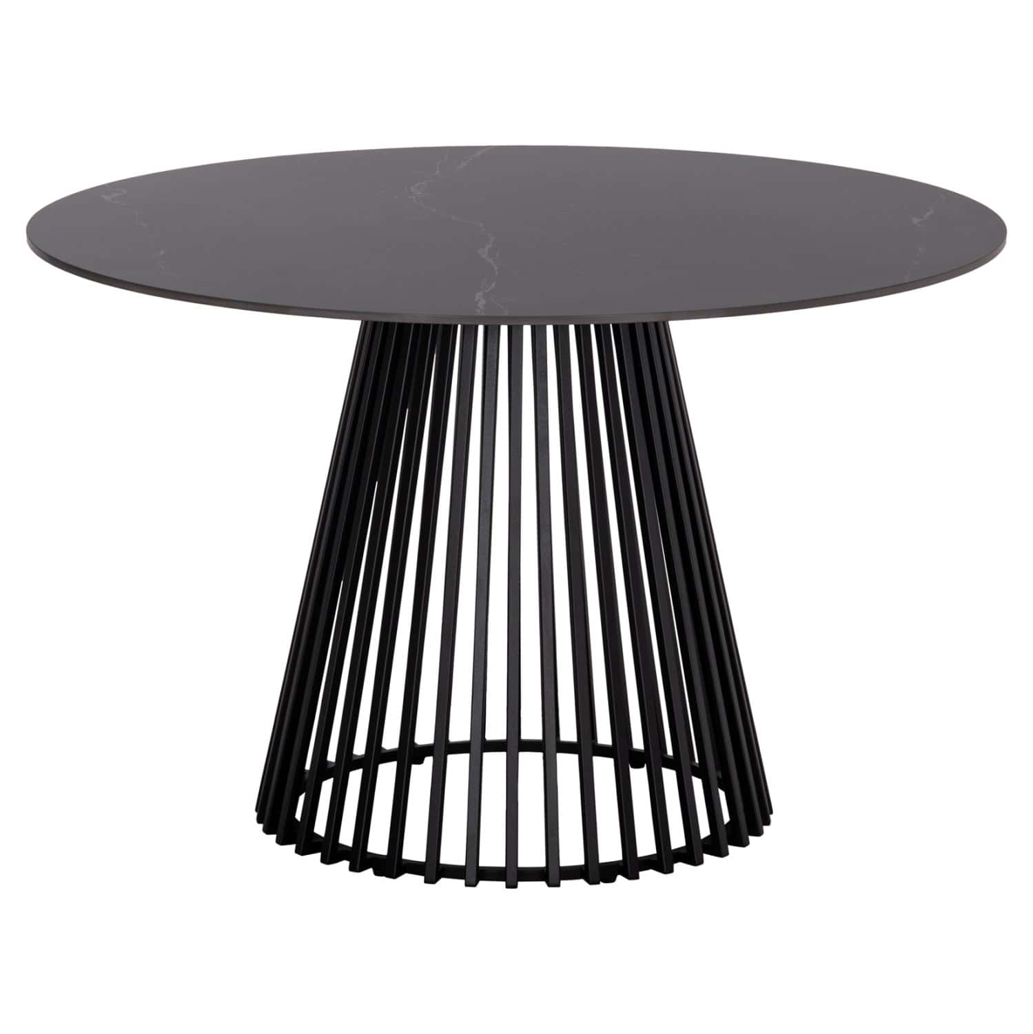 Această masă de dining combină, așadar, în mod minunat, caracterul practic cu luxul. Este rotundă, iar blatul este din ceramică cu aspect de MARMORĂ NEAGRĂ! Cadrul metalic (acoperit cu pulbere) și baza conică cu un design uimitor în culoarea NEGRU completează imaginea și sporesc luxul evident în fiecare centimetru al acestei mese!