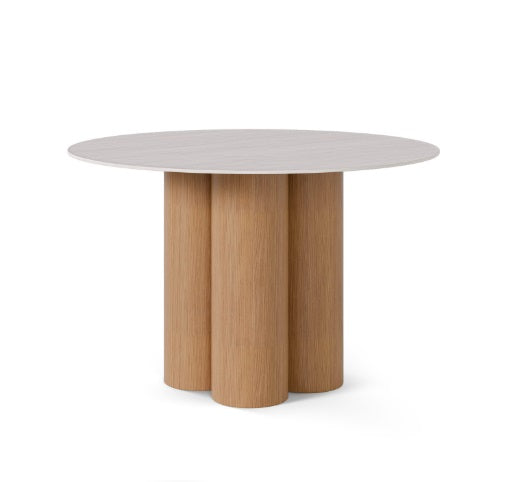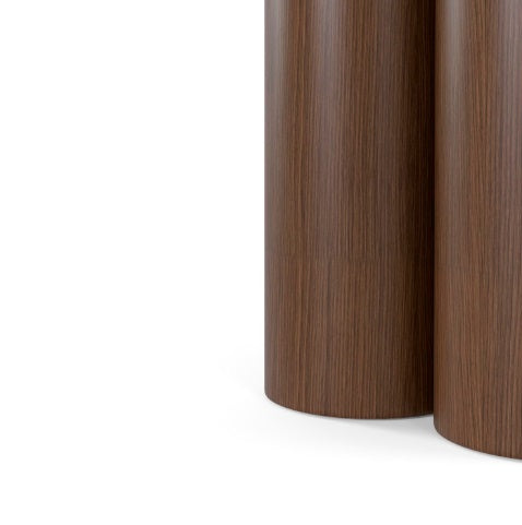 Baza este compusă din patru cilindri din lemn, disponibili în finisaj stejar sau nuc, care conferă soliditate și un caracter decorativ unic.