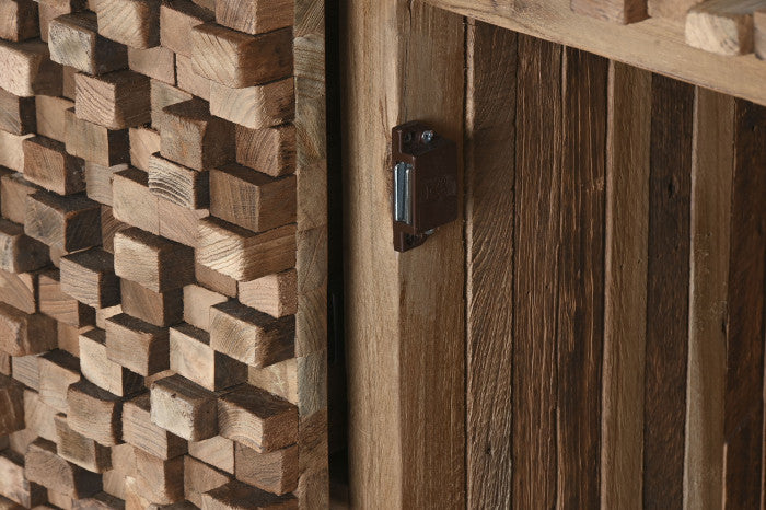 Comoda cu 2 usi si 2 sertare, din lemn de tec reciclat.